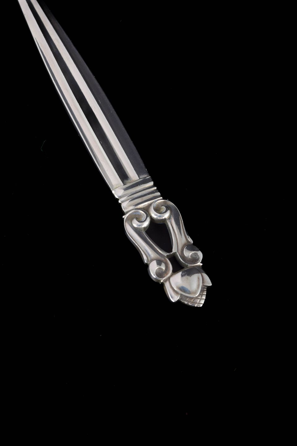 Elegant serveringsske i det klassiske “Konge / Acorn”-mønster, designet af Johan Rohde i 1915. Dekoreret med det karakteristiske akantusblad og agernmotiv.