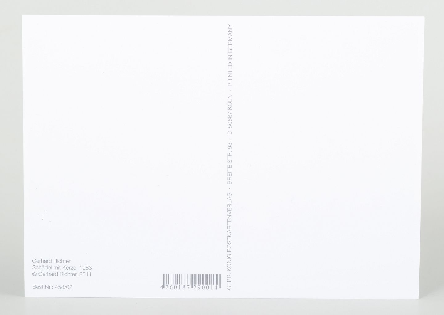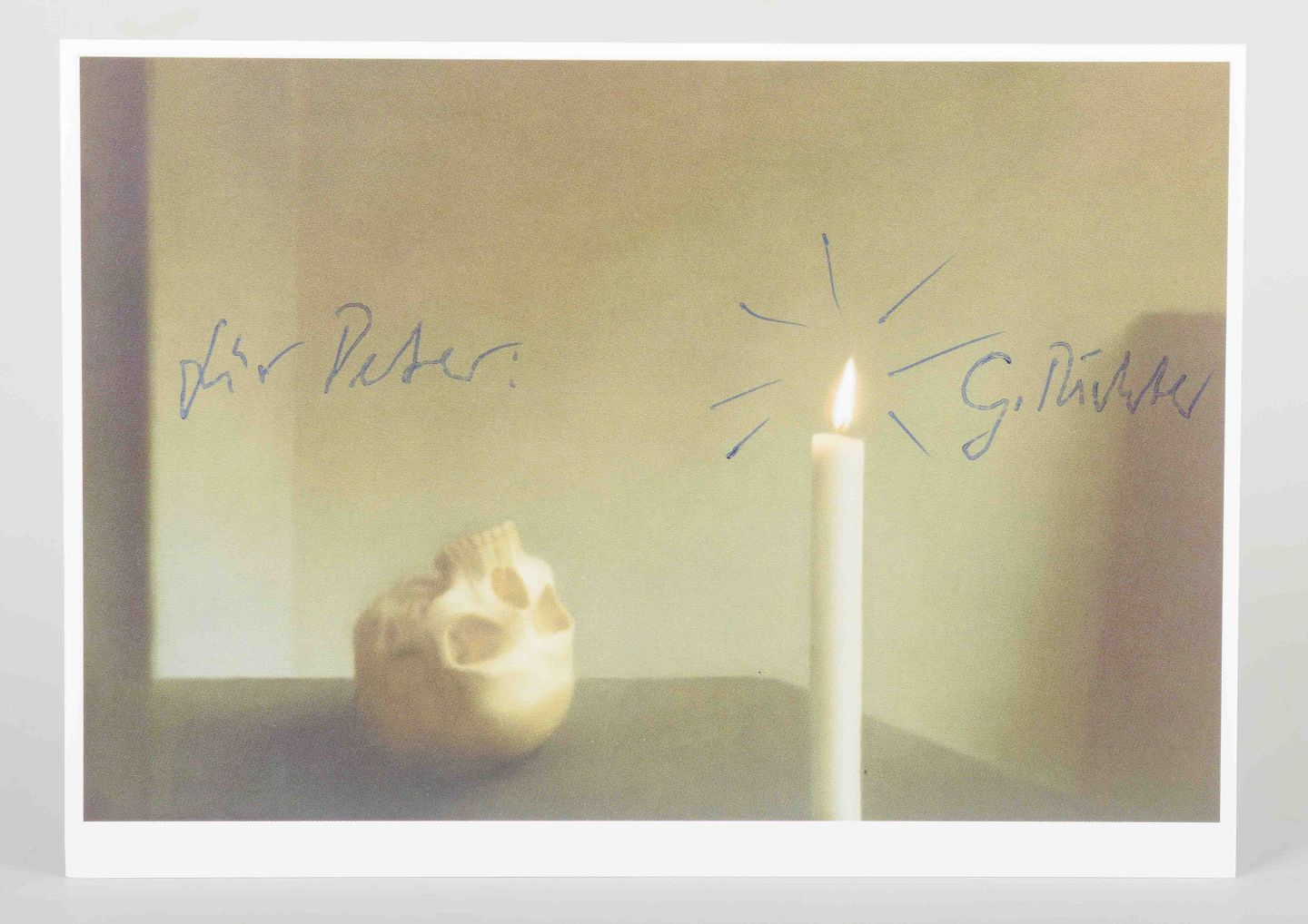 Et ikonisk motiv af Gerhard Richter med et stilleben bestående af et kranium og en lysende stearinlys. Værket fremstår i en poetisk balance mellem liv og forgængelighed, hvor lyset fungerer som symbol på nærvær og eksistens. Dette eksemplar er håndsigneret af kunstneren med dedikation.