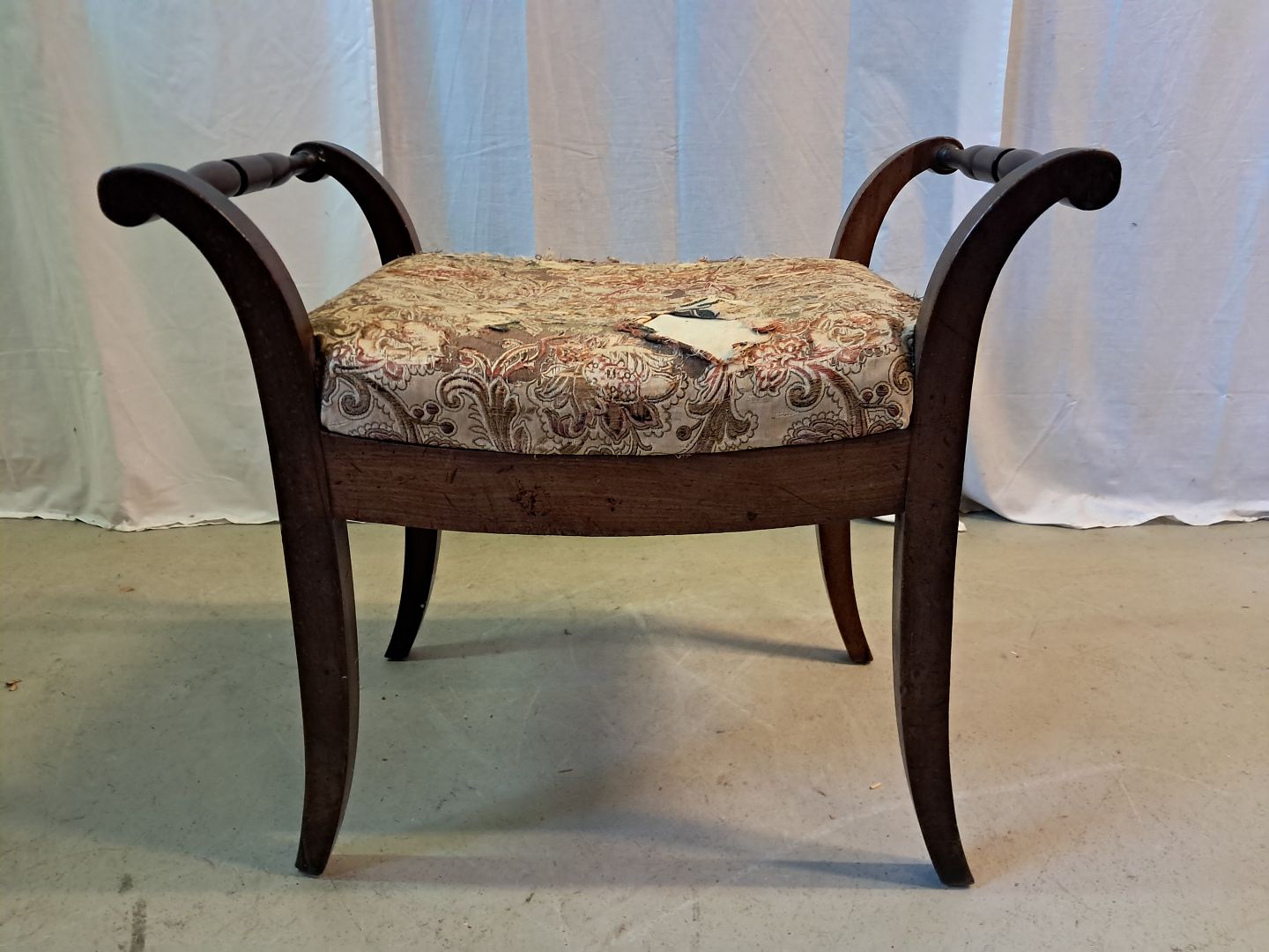 Klaverskammel i massivt mahogni, fra 1910erne.