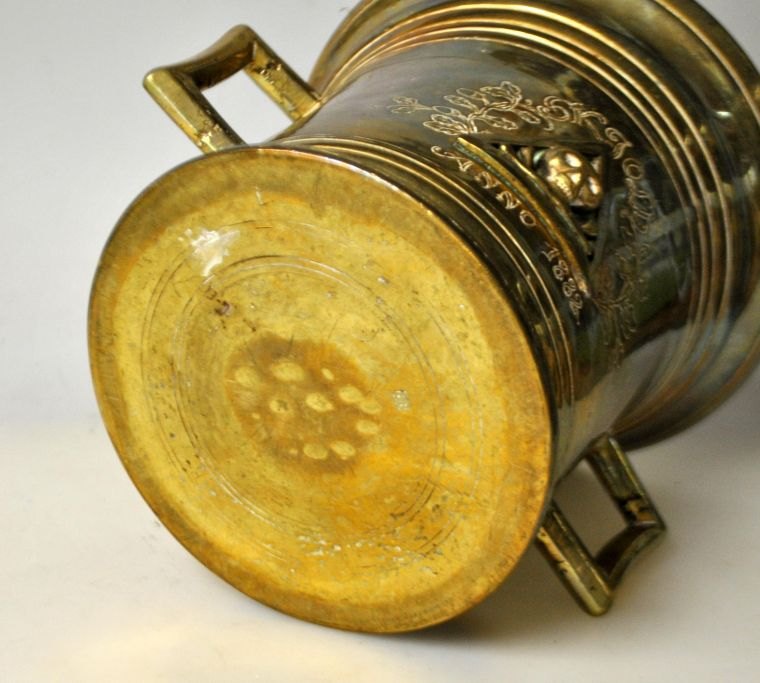 Großer Apothekermörser aus Messing von Svane Apoteket in Randers, 1882. Dänemark.
