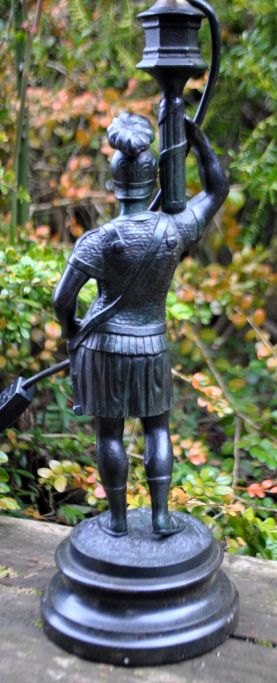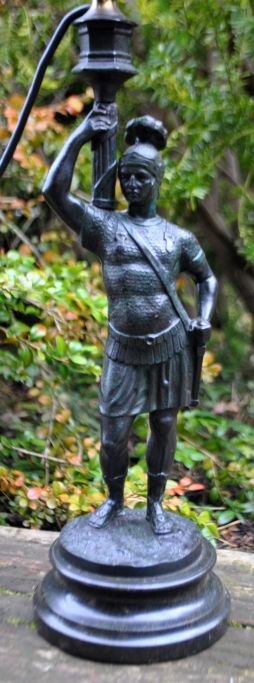 Tischlampe in Form eines stehenden römischen Soldaten, Deutschland des 19. Jahrhunderts.
