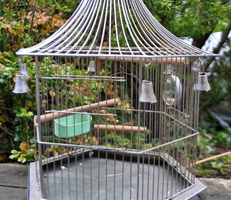 Sechseckiger Vogelkäfig aus Metall, 20. Jahrhundert.