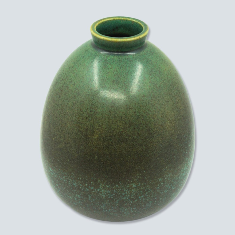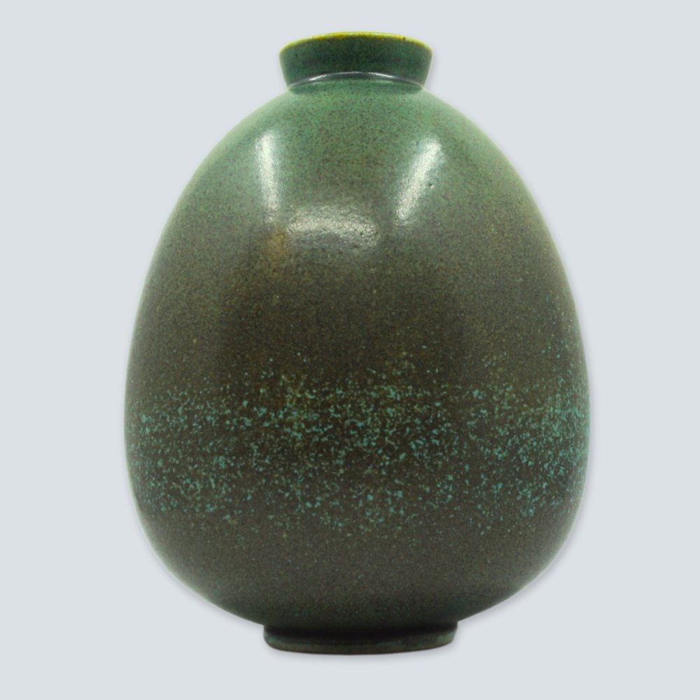 Text zugänglich auf Dänische: Saxbo, Eva Stæhr-Nielsen; Vase af stentøj dekoreret i blå-brunlig glasur, nr. 287