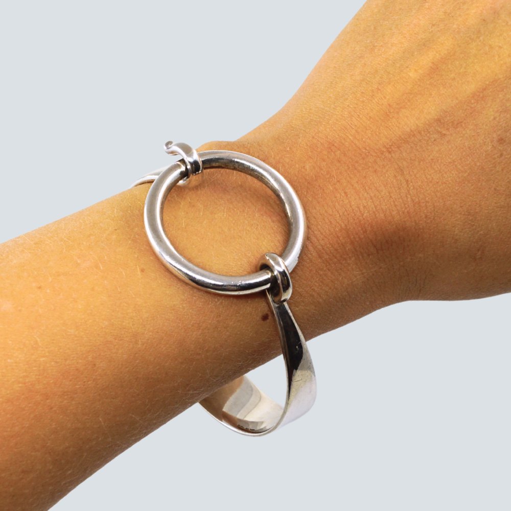 Hans Hansen; Armring af sterling sølv. Med cirkel formet lås foran.
