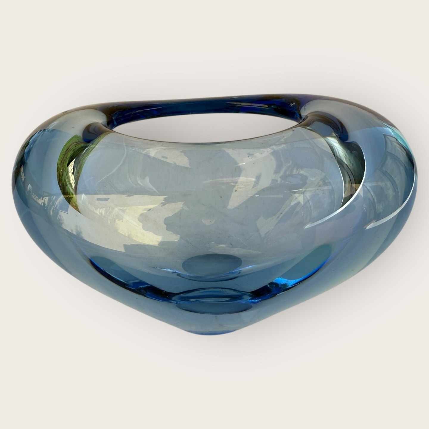 | Holmegaard, Menuett, Herzvase, Hellblau, Nr. 220737, 15 cm breit, 10 cm hoch, Design Per Lütken *Guter Zustand mit geringen Gebrauchsspuren*