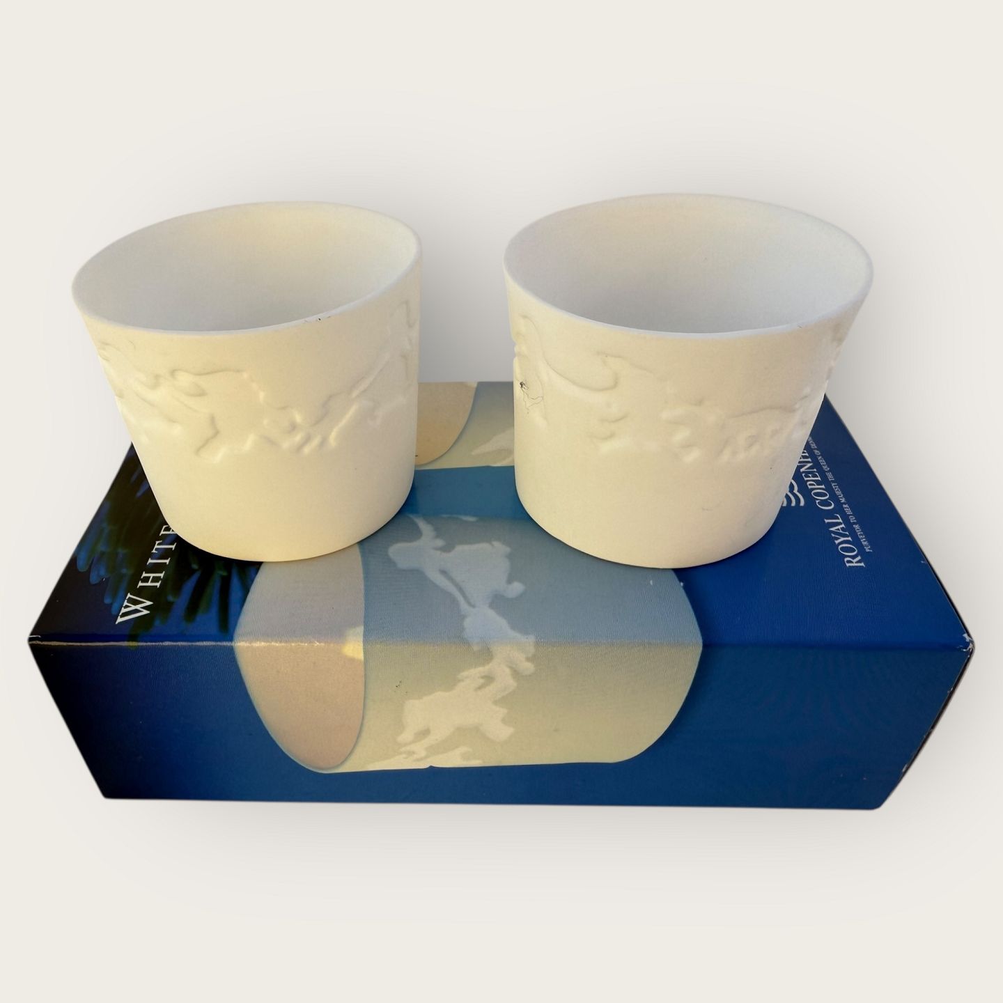 Royal Copenhagen, Silhouette, Teelichthalter mit tanzenden Elfen, 2 Stück in Originalverpackung.