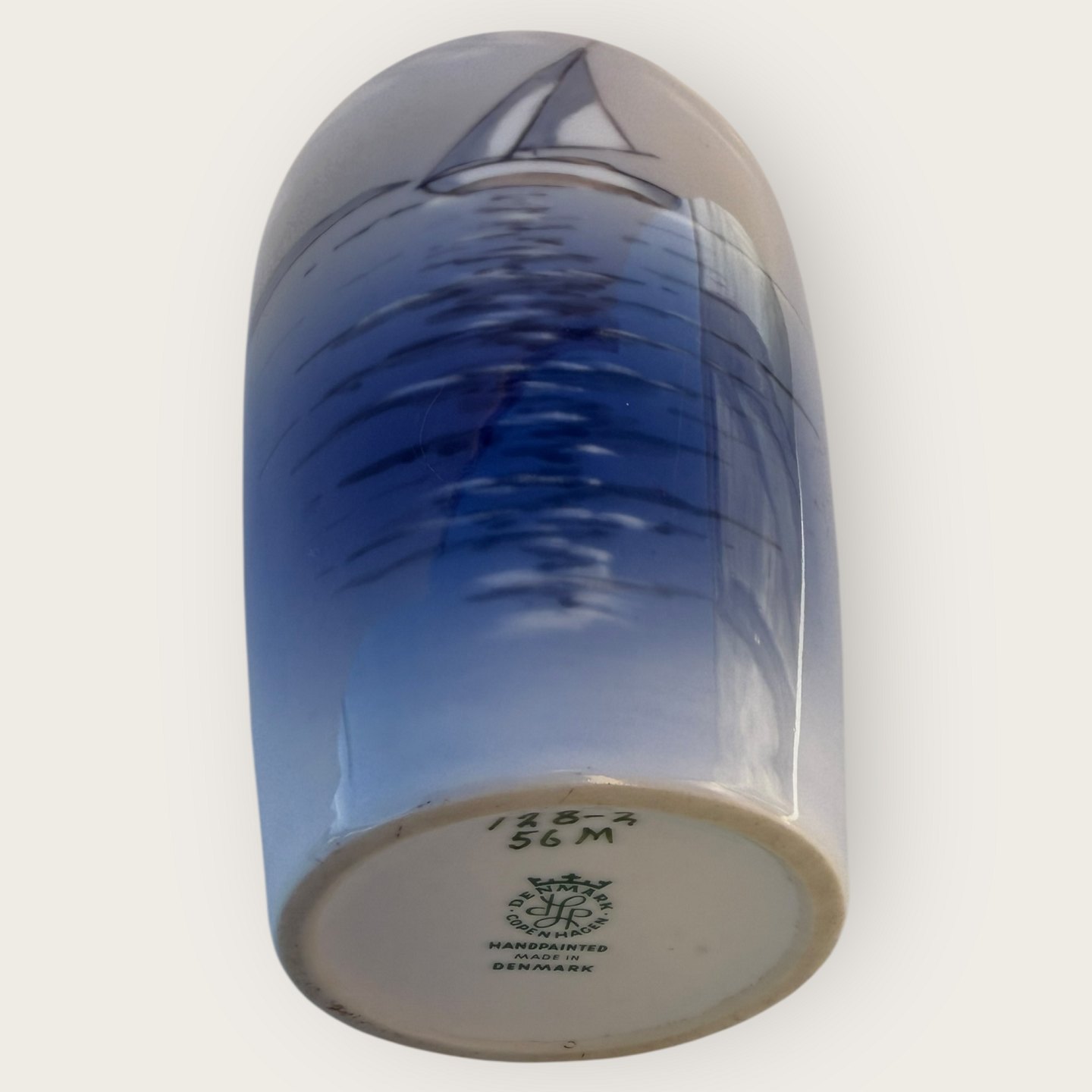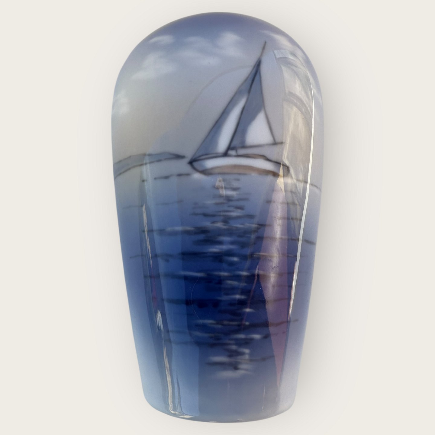 Lyngby Vase mit Segelschiff, Nr. 128-2, Höhe 17,5 cm, guter Zustand