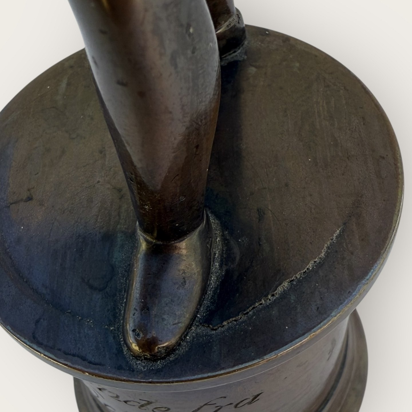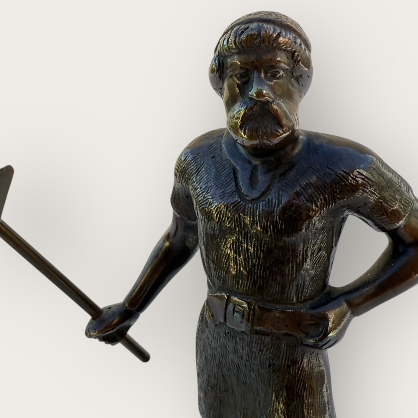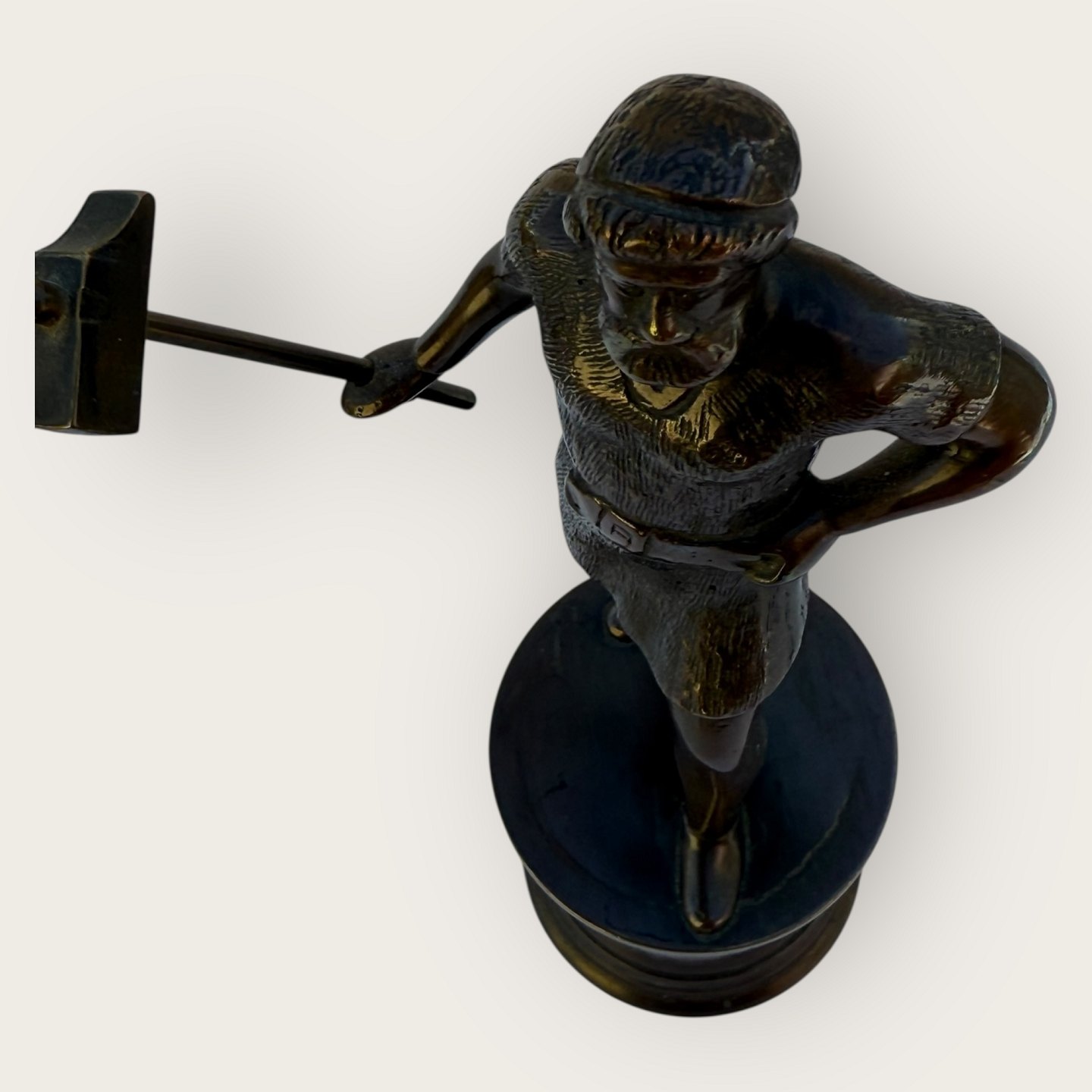 Bronzefigur des Gottes Thor mit seinem Hammer, kleiner Riss im Sockel am Fuß (siehe Foto), sonst guter Zustand, graviert: In Erinnerung an Oda, Höhe 19cm
