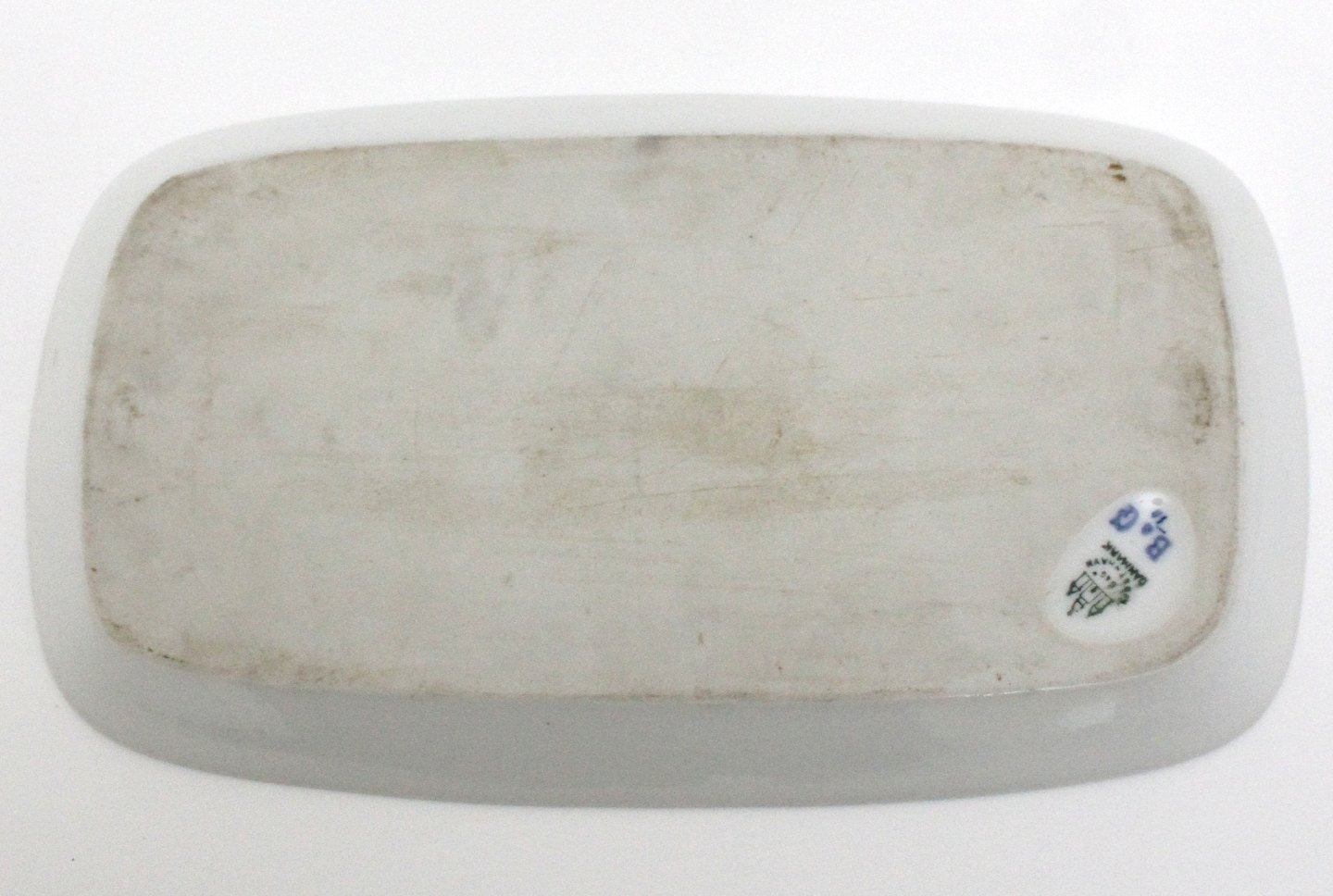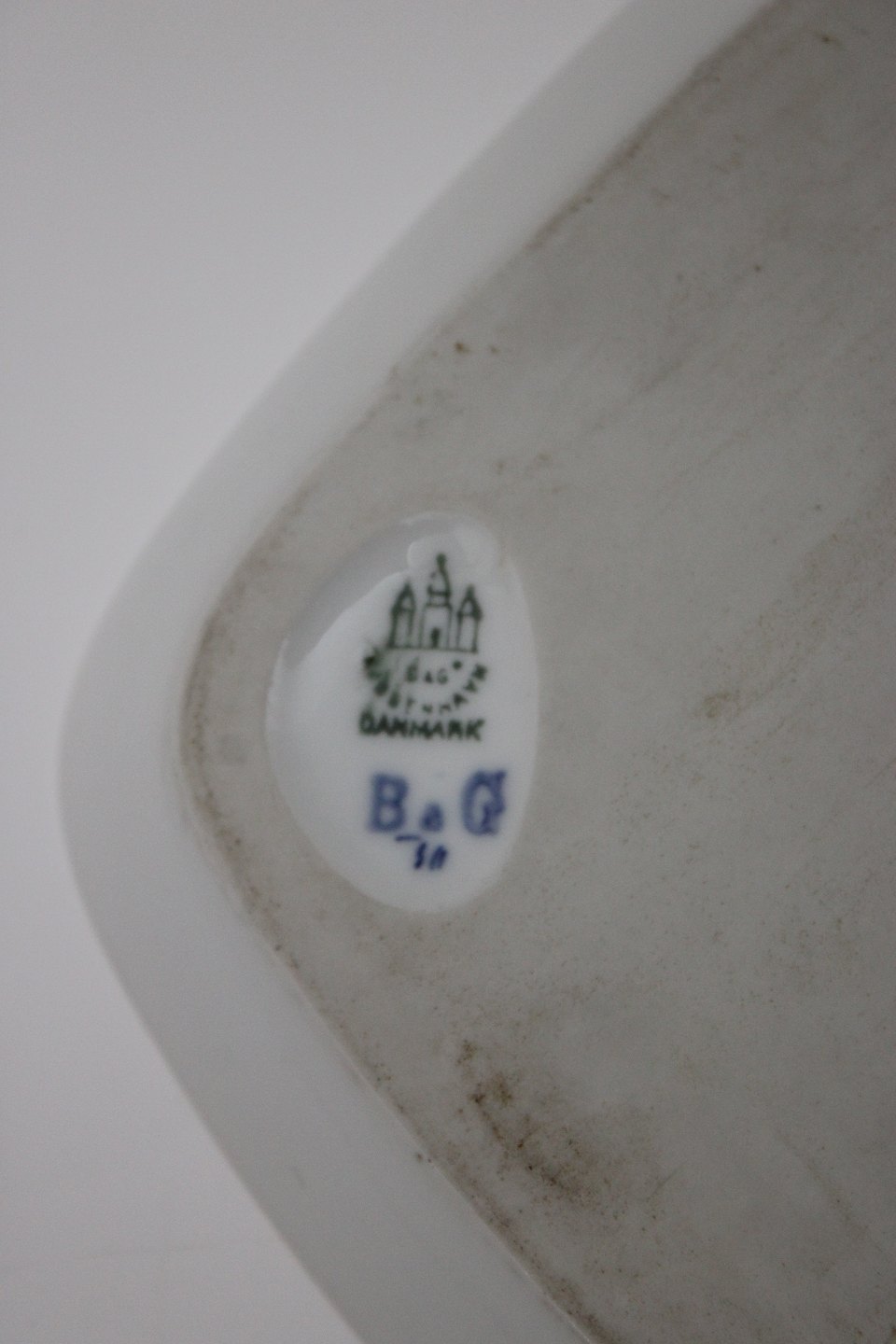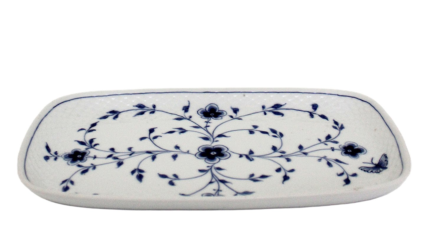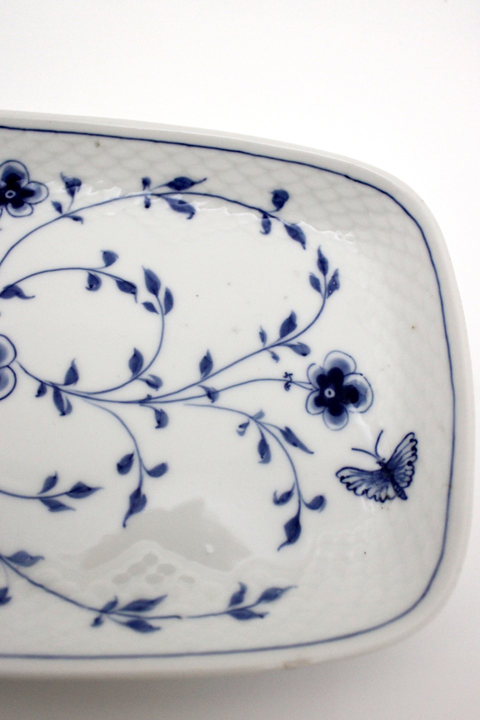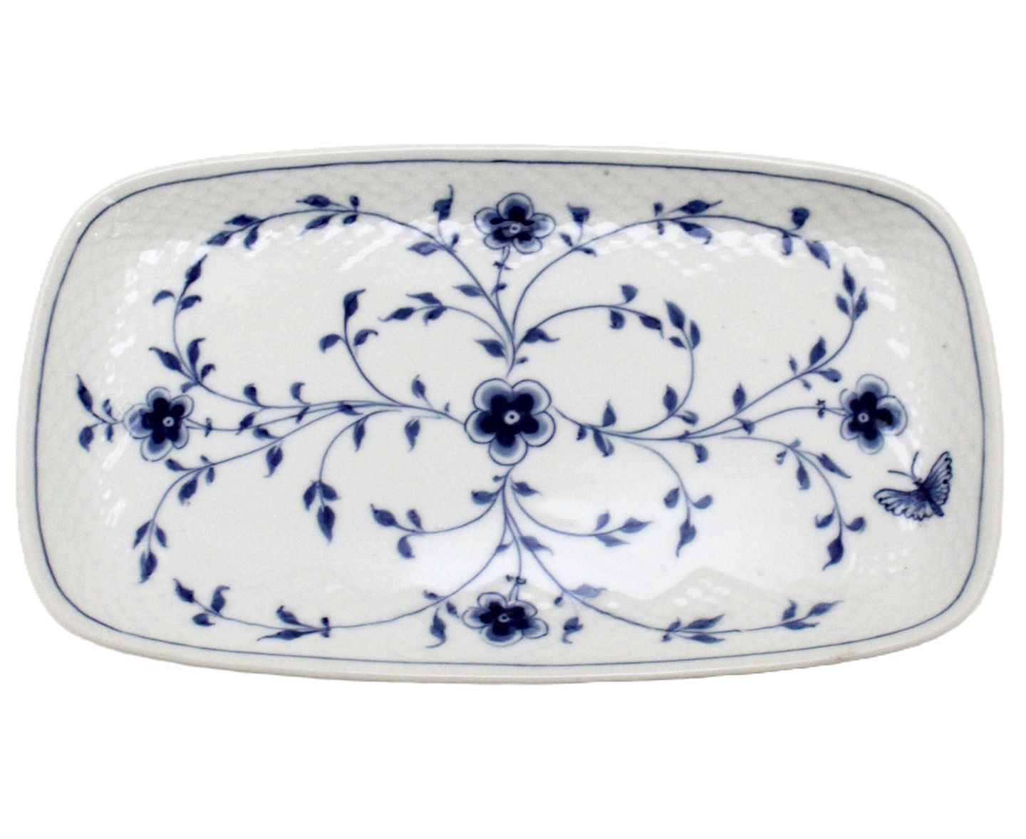 Text zugänglich auf Dänische: Bing & Grøndahl, Sommerfugl, Bakke til sukker og fløde. Højde 2 cm. Længde 27 cm. Bredde 15,5 cm. Produceret i perioden 1915-1948. I. sortering. Fin stand. Pris: 475 kr. stk. Lager: 1