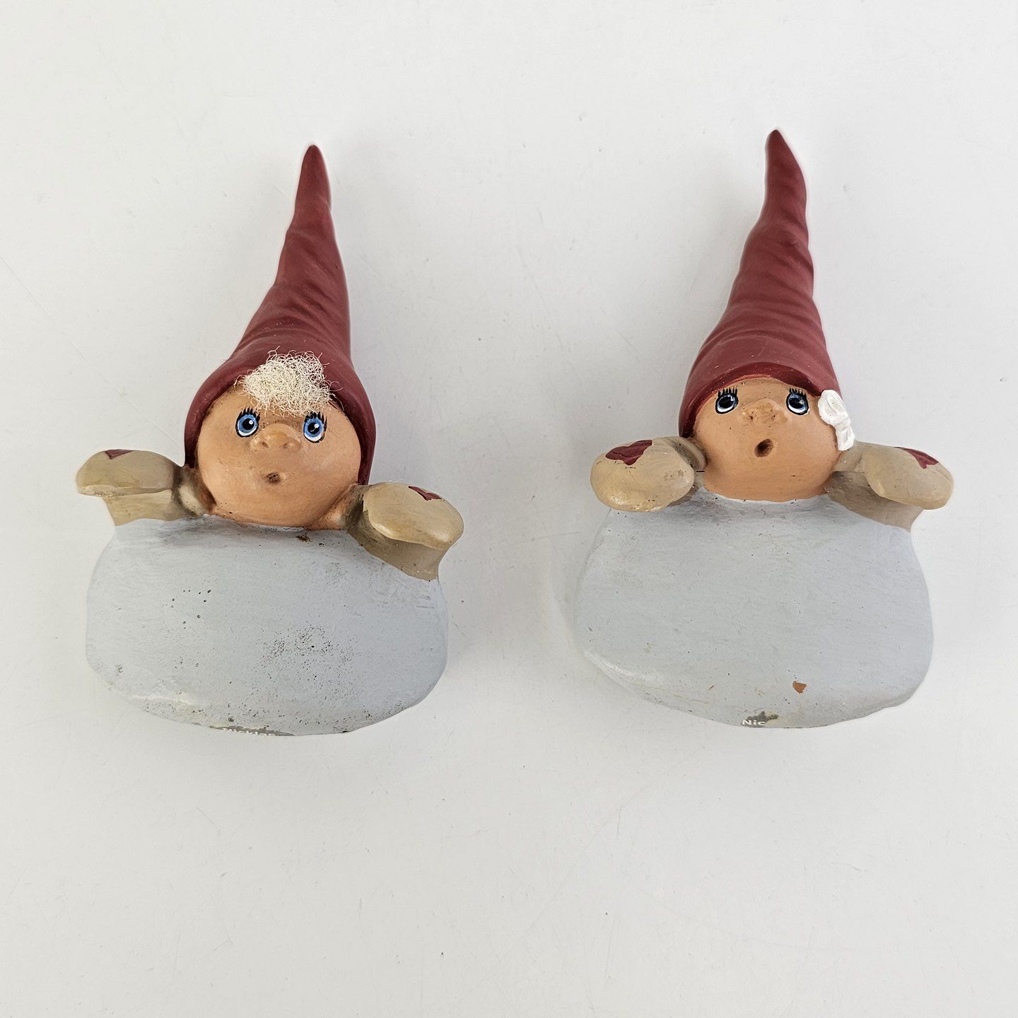 Figurer med motiv af to små nisser Nicklas og Nicoline, og en lysestage med navnet Paw