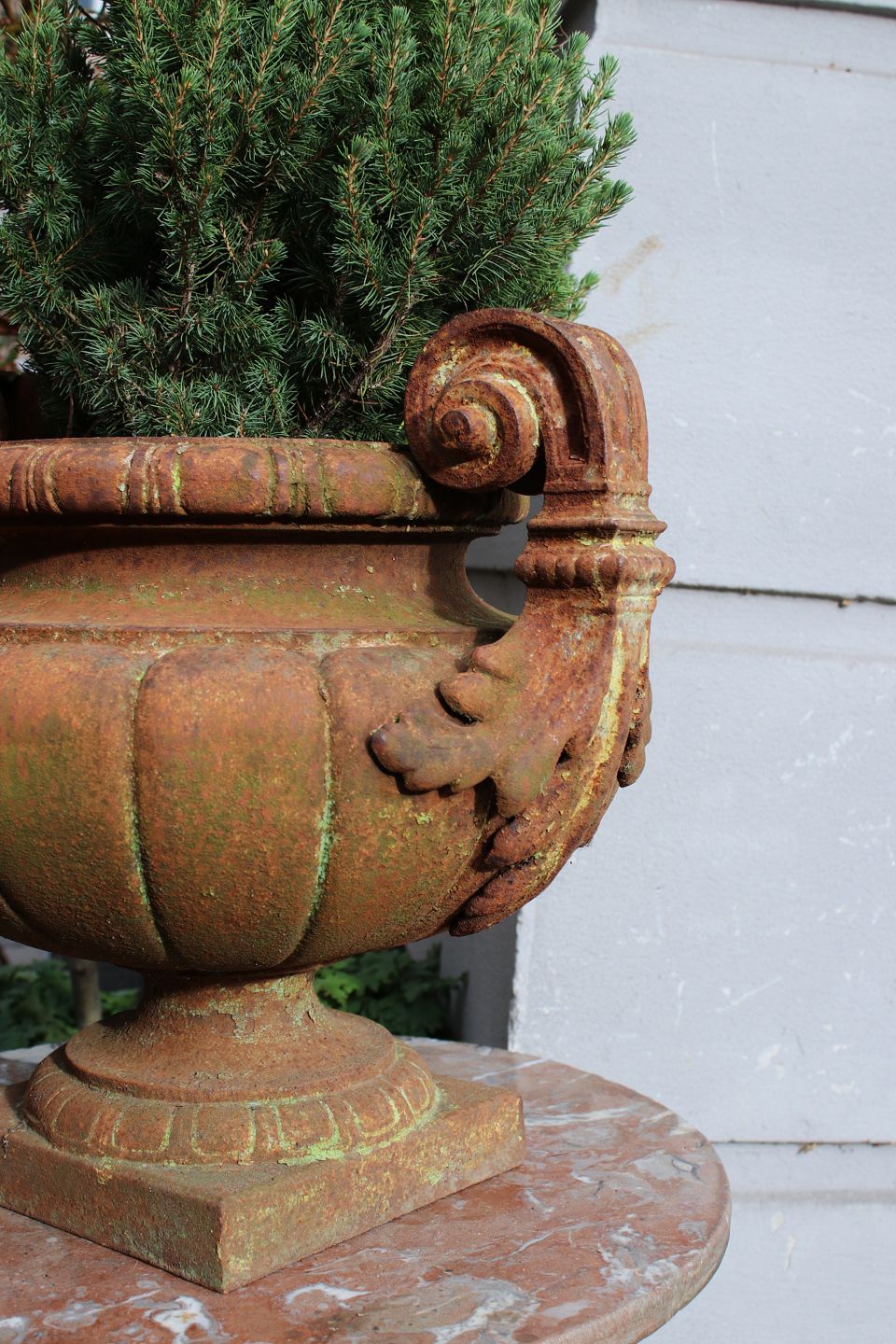 Store , franske 1800 tals jern krukker med hanke og en rigtig fin gammel patina...