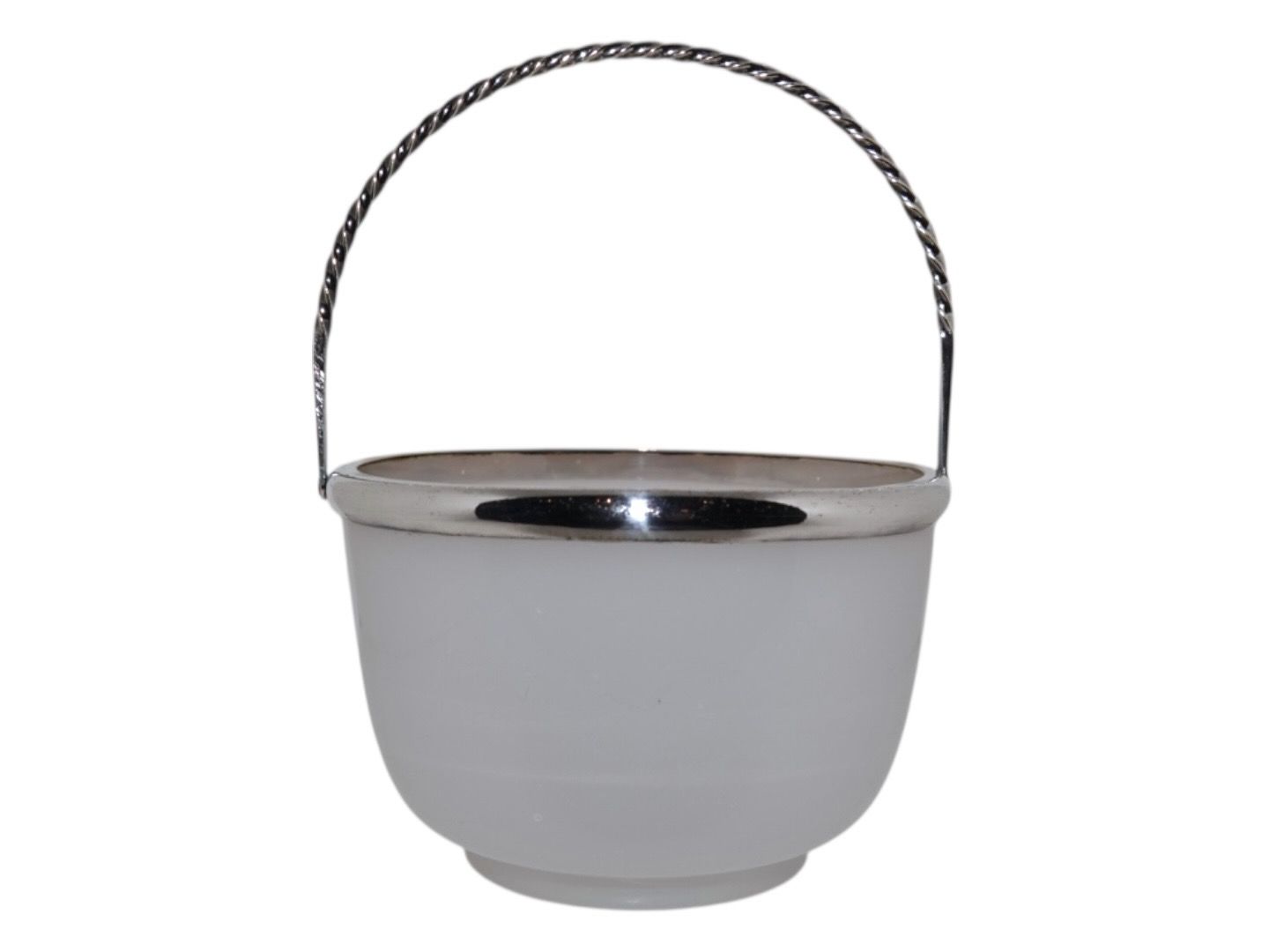 Kandisskål i hvidt opalineglas med sølvplet hank