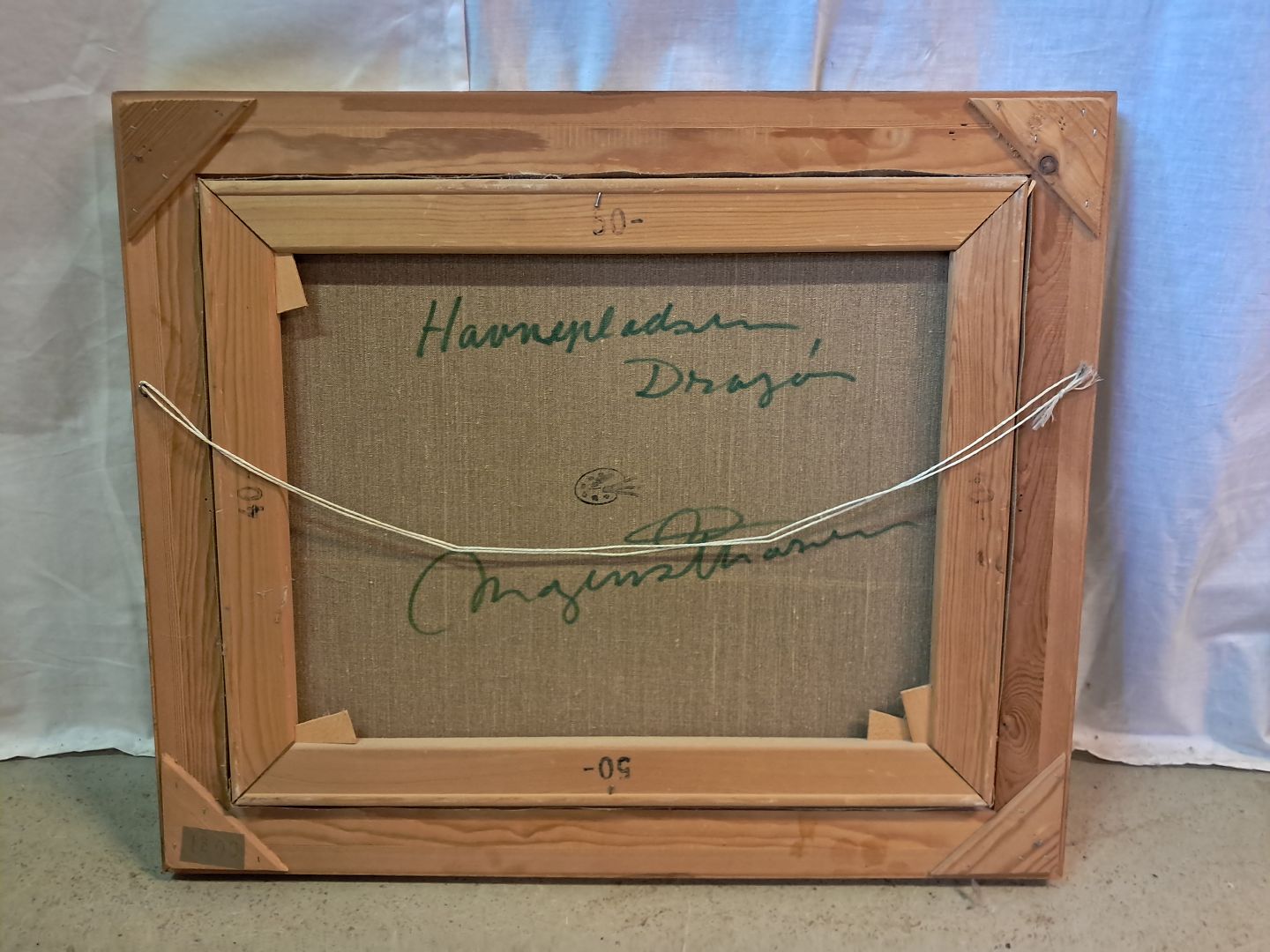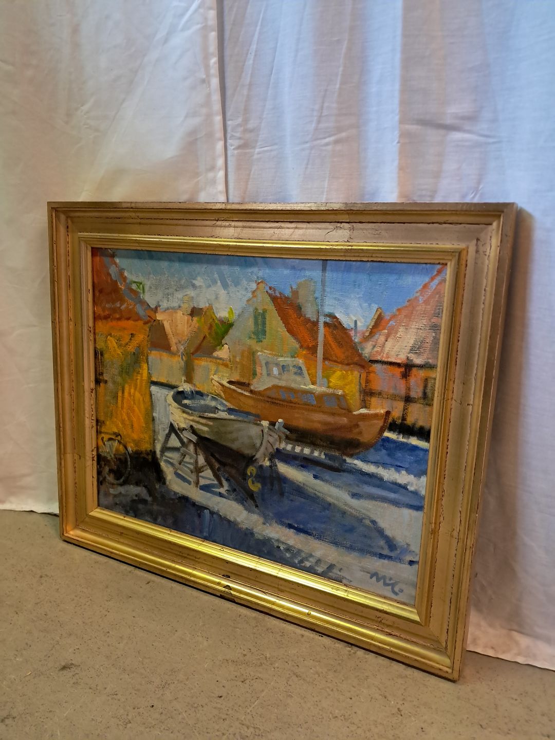 Maleri af Dragør Havn i guldmalet ramme, af : Mogens Amdi Thorsen (1924-2016)