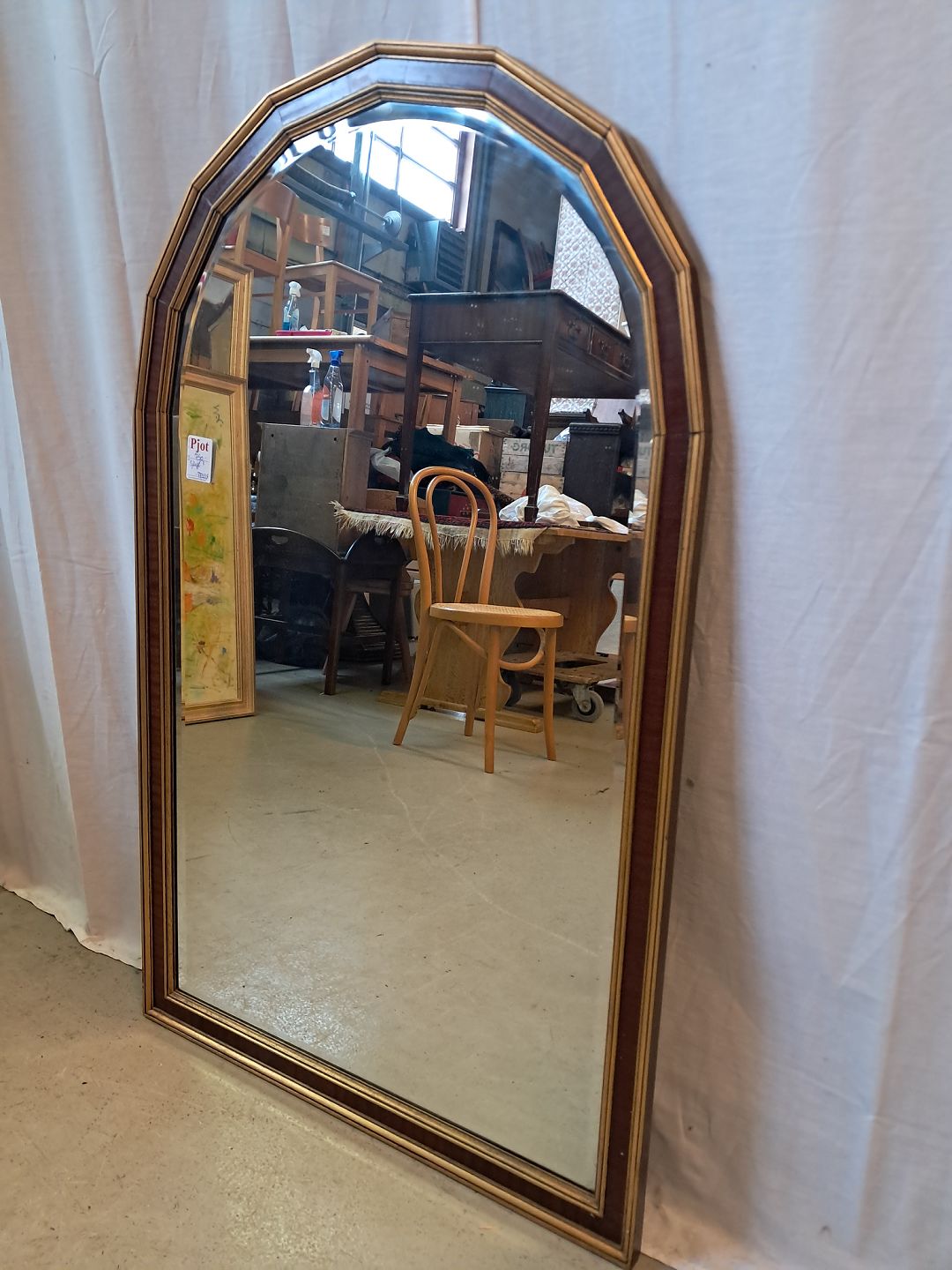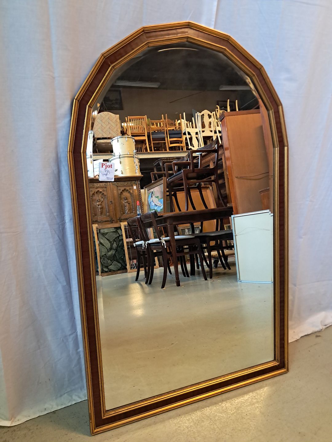 Facetslebet spejl i fineret mahogni og guldmalet ramme, fra 1980erne.