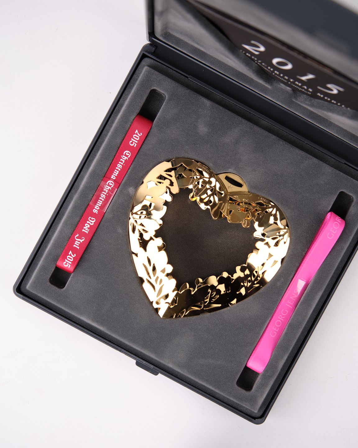 Georg Jensen juleuro 2015. Hjerte belagt med 24 kt. guld. H: 9 cm, B: 9 cm. Klassisk dansk julepynt og samlerobjekt.