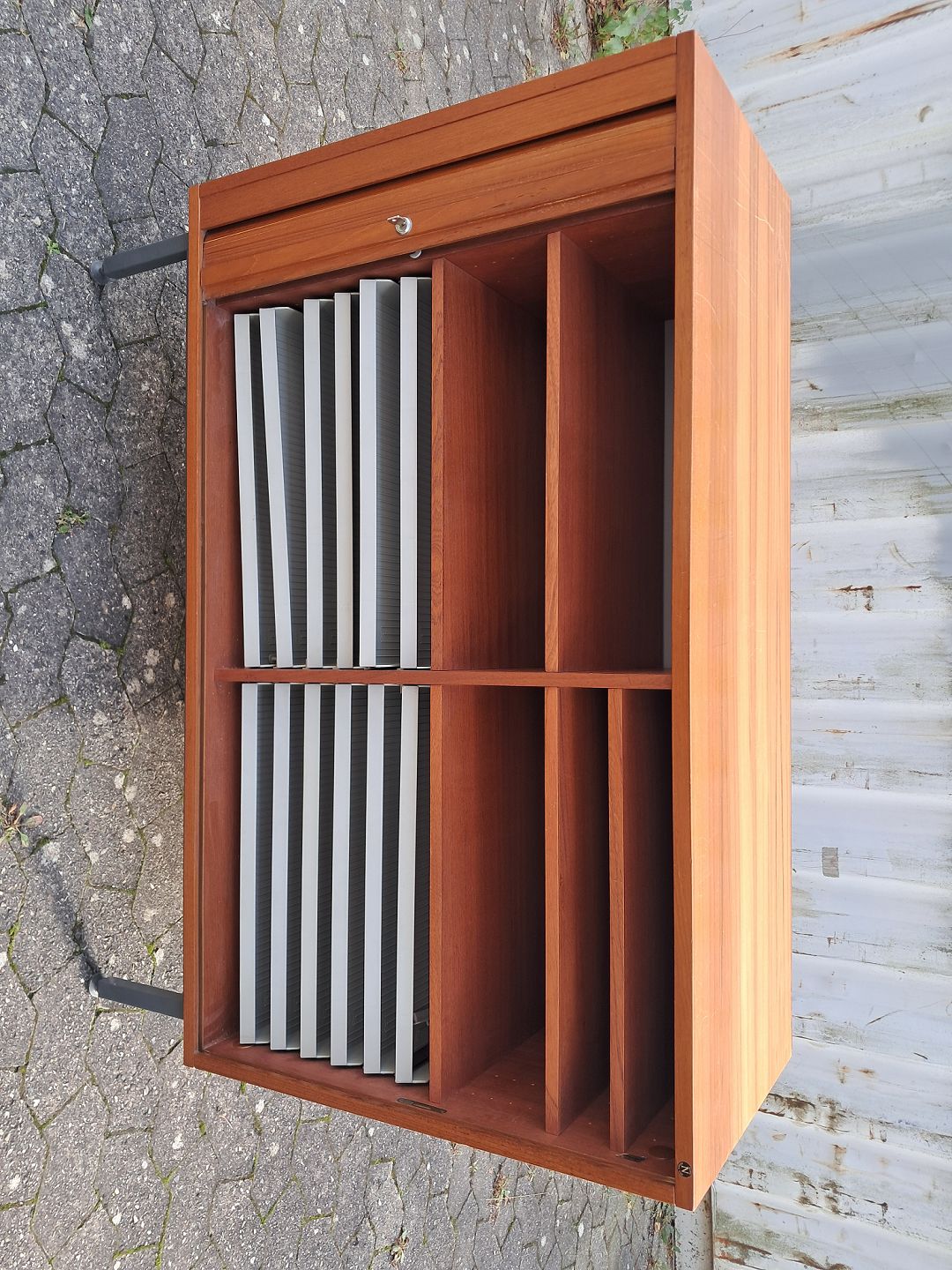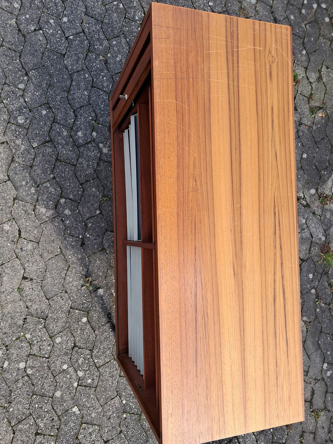 Jalousi skab i fineret teaktræ, fra 1970erne.