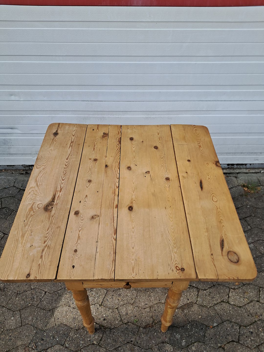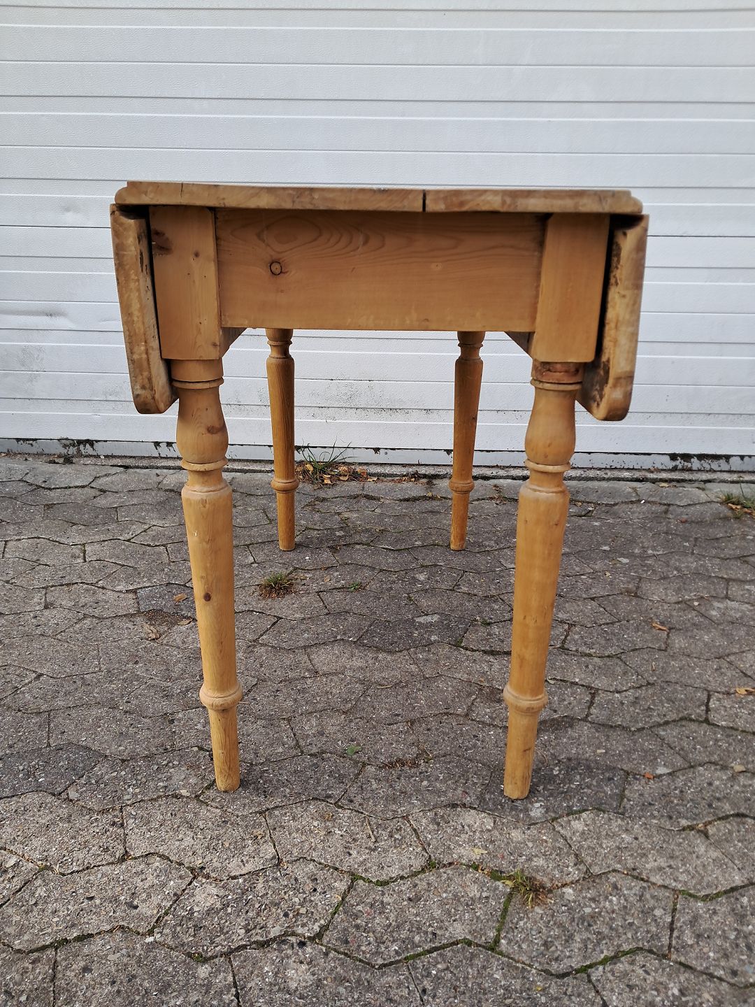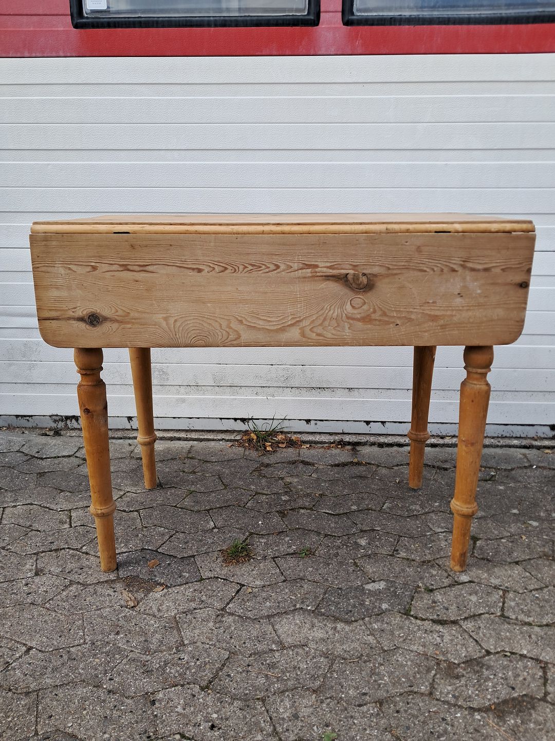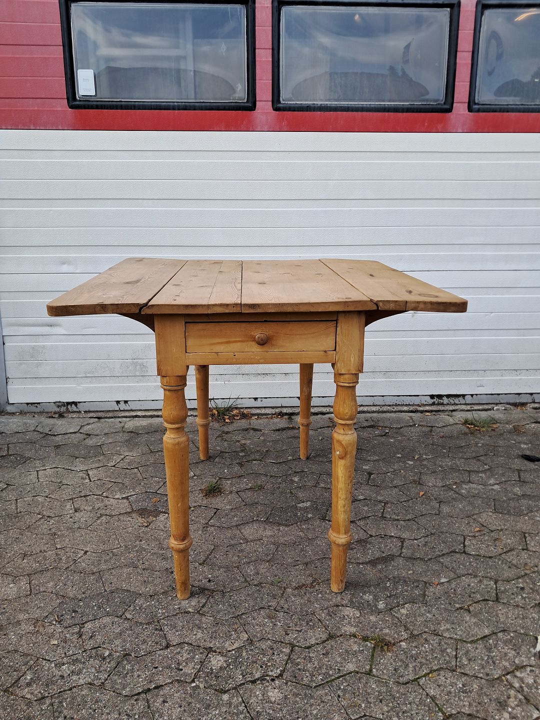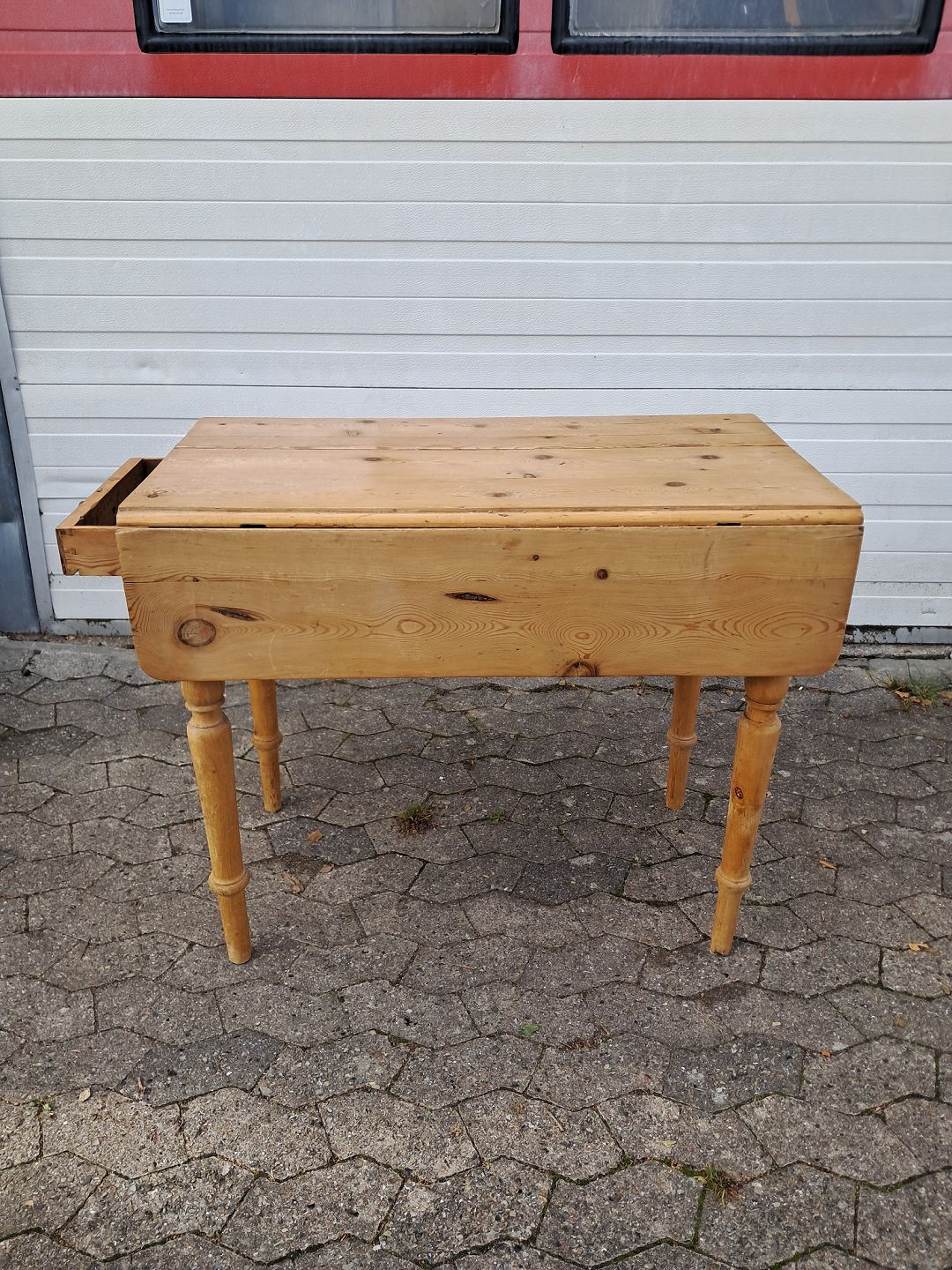 Bord i massivt fyrretræ med klapper og skuffe, fra 1920erne.