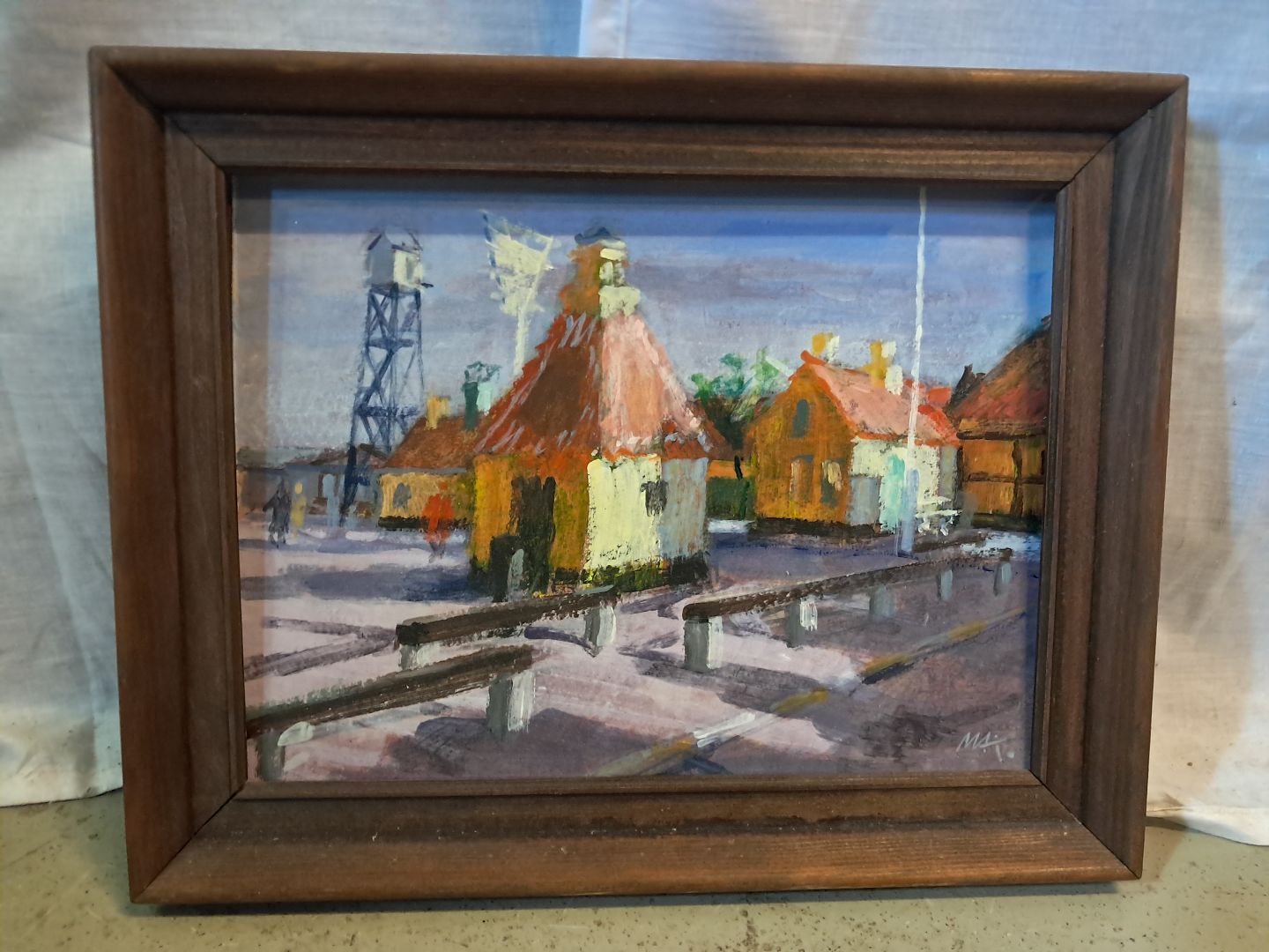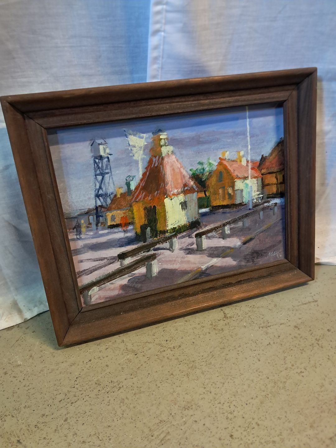 Maleri af Dragør Havn i fyrretræs ramme, af : Mogens Amdi Thorsen (1924-2016)