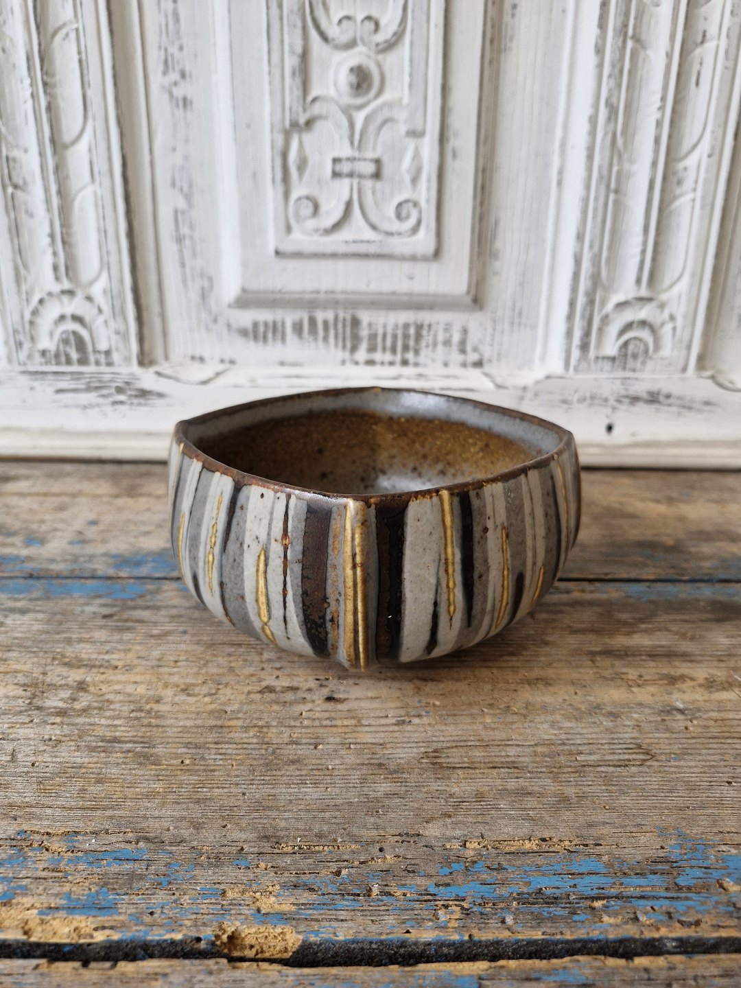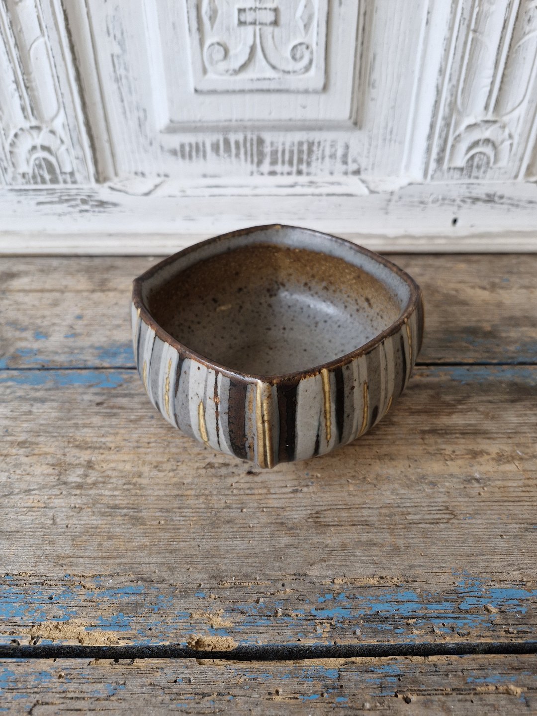 Text zugänglich auf Dänische: Ivan Weiss for Royal Copenhagen skål i stentøj med smuk glasur i grå, sort og brune nuancer no. 22562