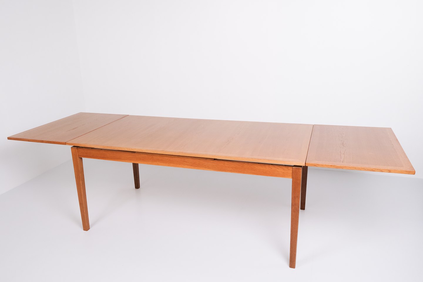 Kai Winding Eichen-Esstisch aus den 1960er Jahren. Slagelse Møbelfabrik. Auszug mit zwei Platten, jeweils 55 cm.