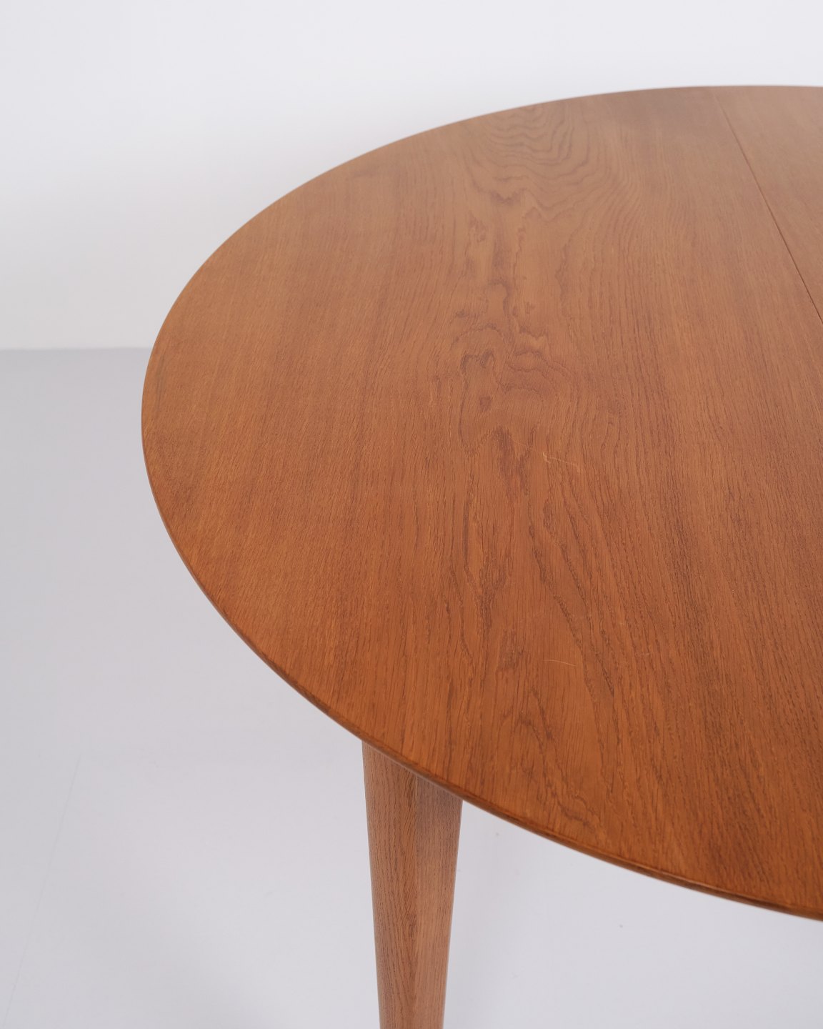 Runder Eichen-Esstisch aus den 1960er Jahren. Dänisches Design im klassischen Stil.