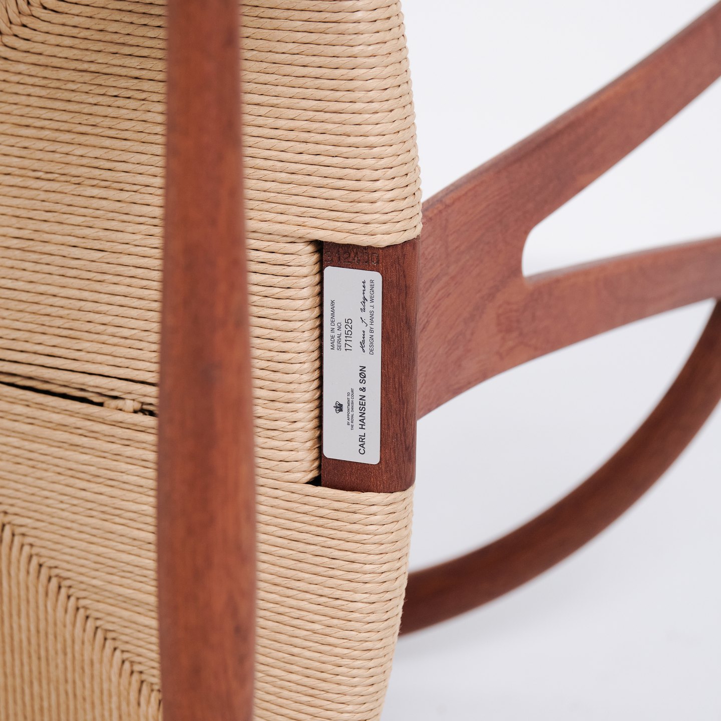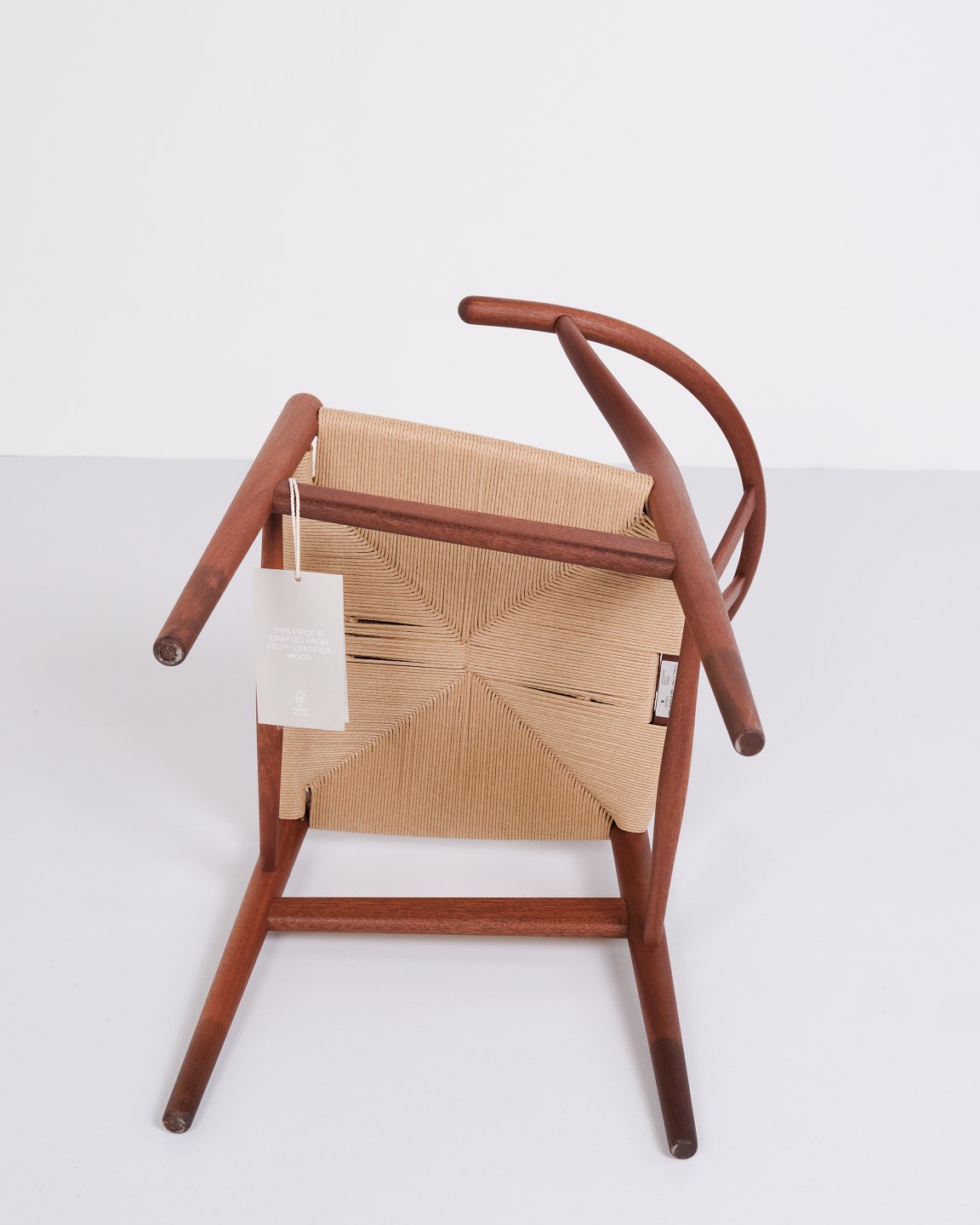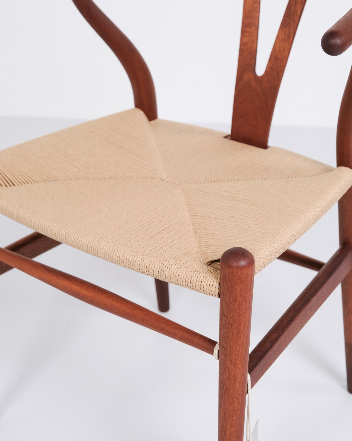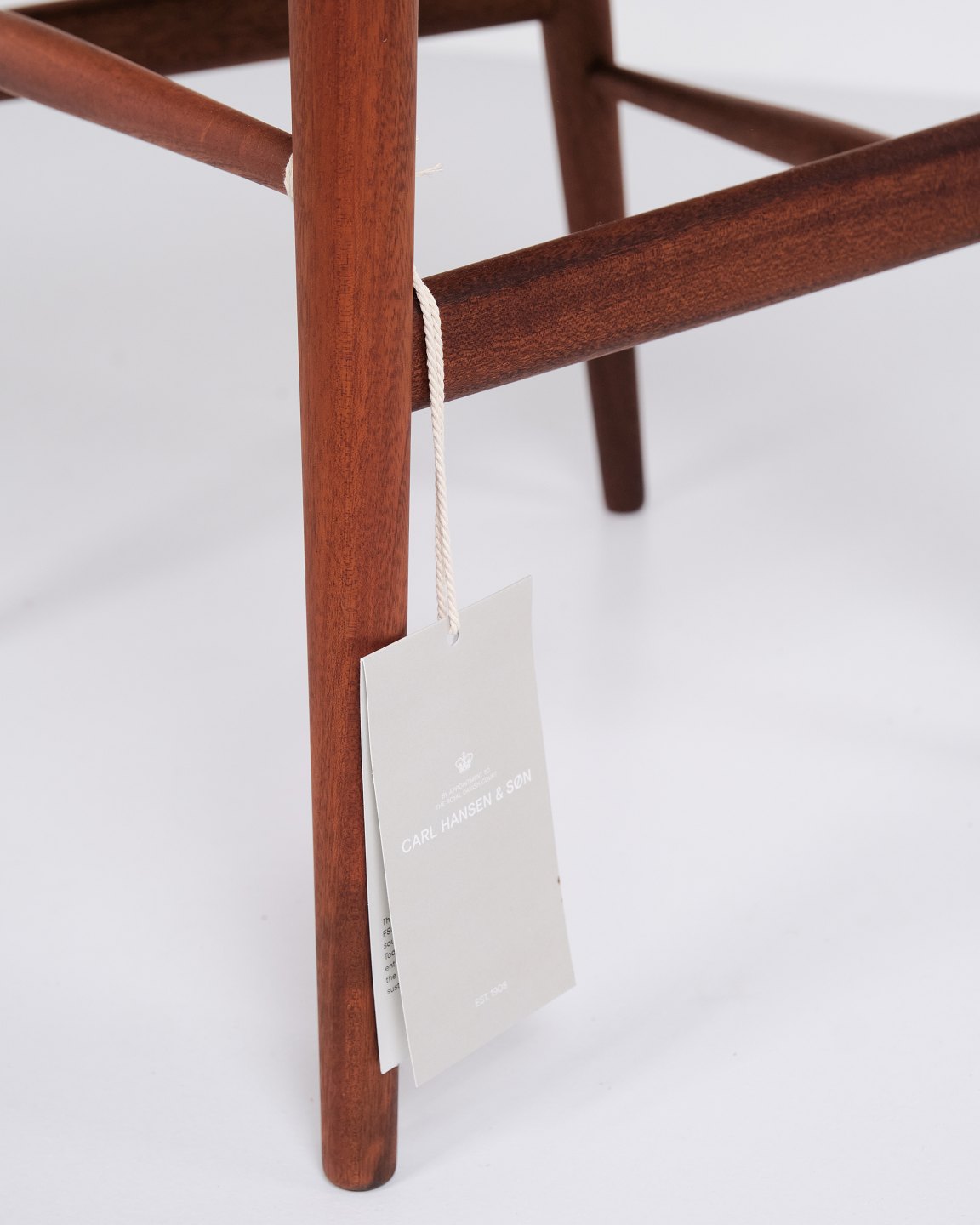 Text zugänglich auf Dänische: Sæt af fire Hans J. Wegner Y-stole, model CH24. Mahogni med naturflet. Carl Hansen & Søn.