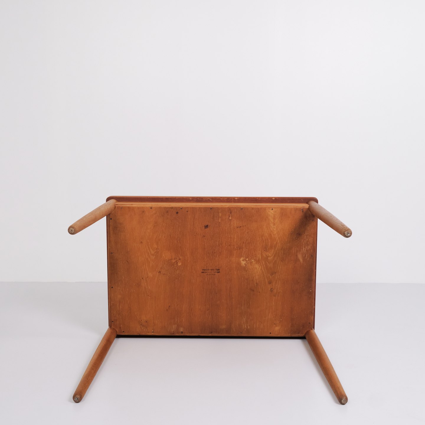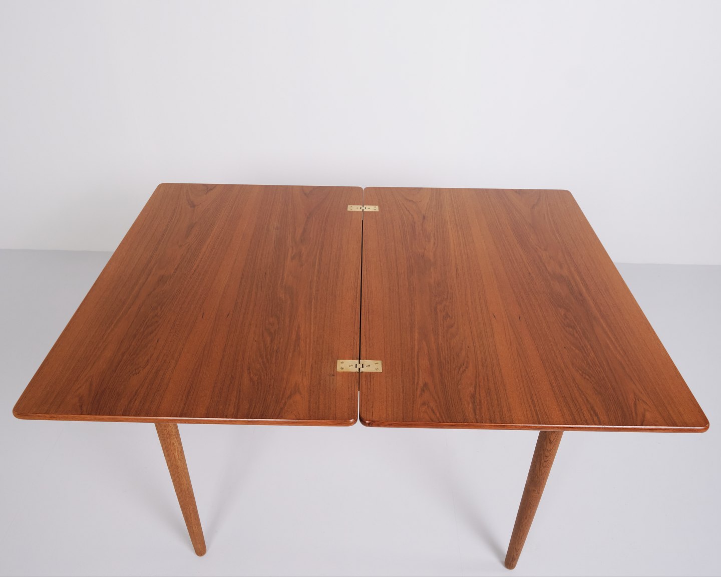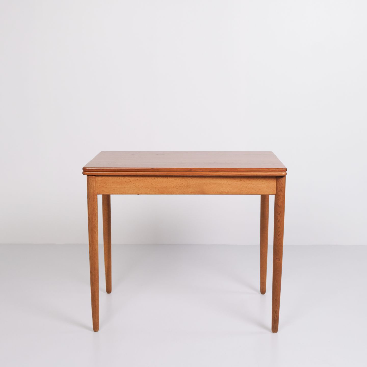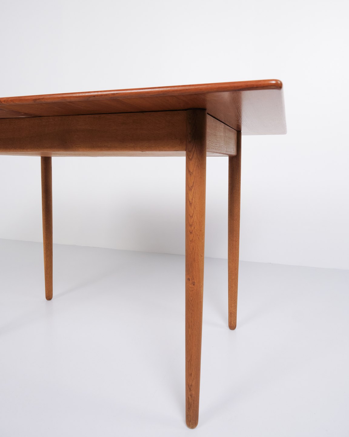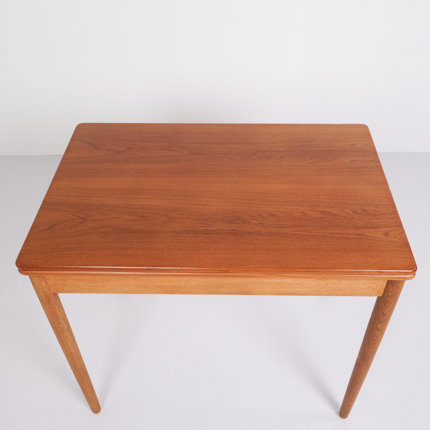 Hans J. Wegner Spiel/Esstisch für Andreas Tuck. Teak und Eiche, 1960er Jahre. Eingebauter Stauraum.