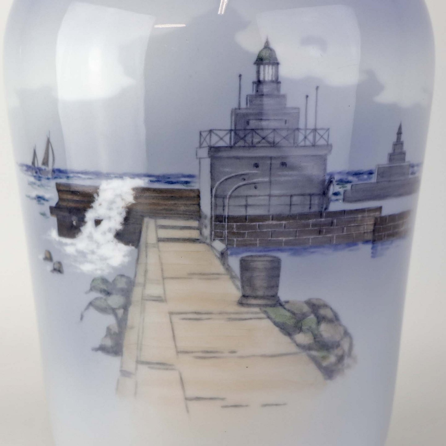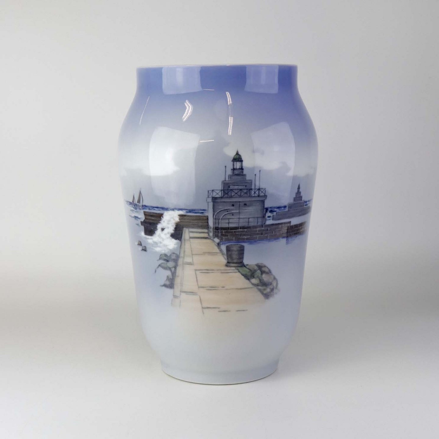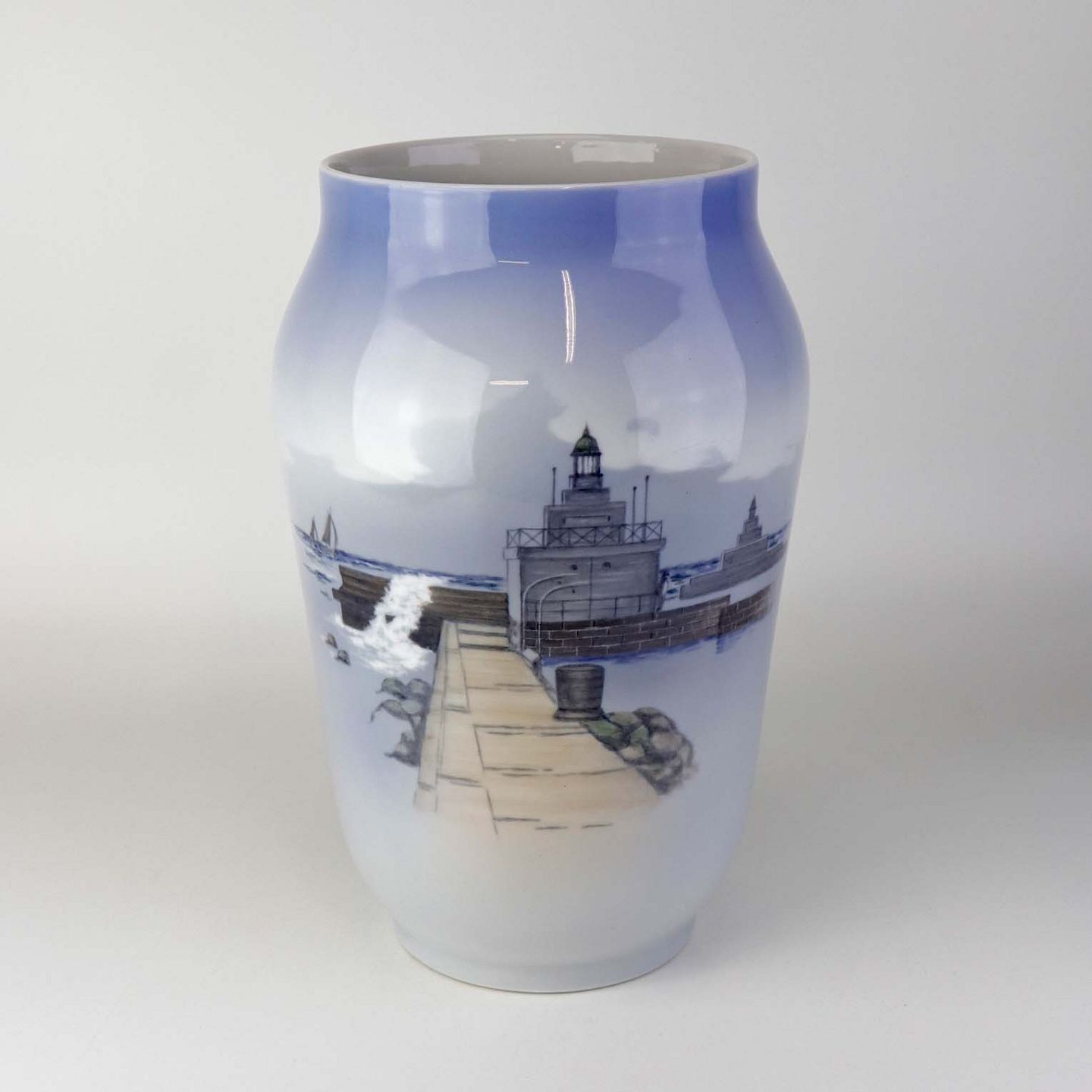 Text zugänglich auf Dänische: Vase i kongelig porcelæn med motiv af indsejlingen til Københavns havn. Nr. 2860/1217