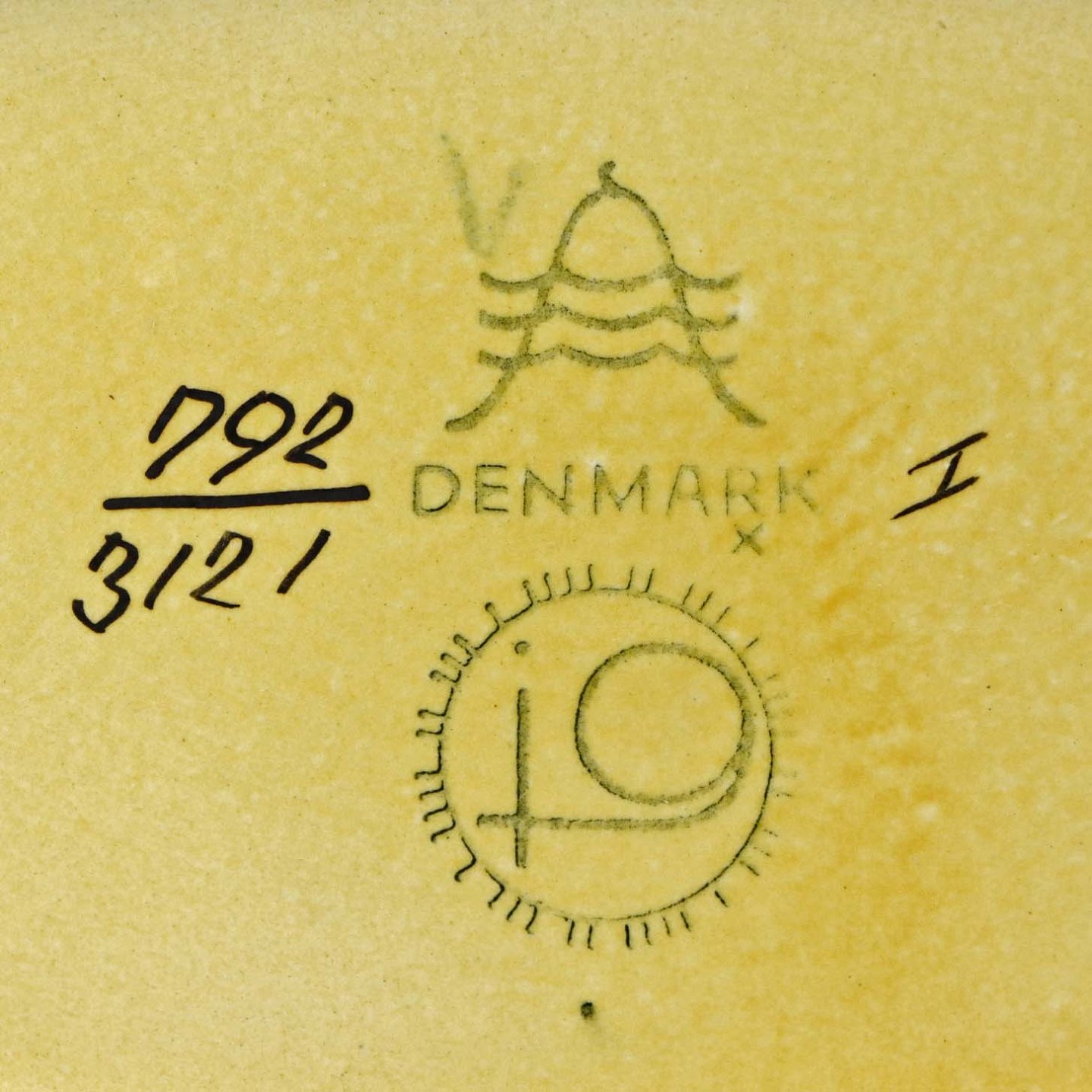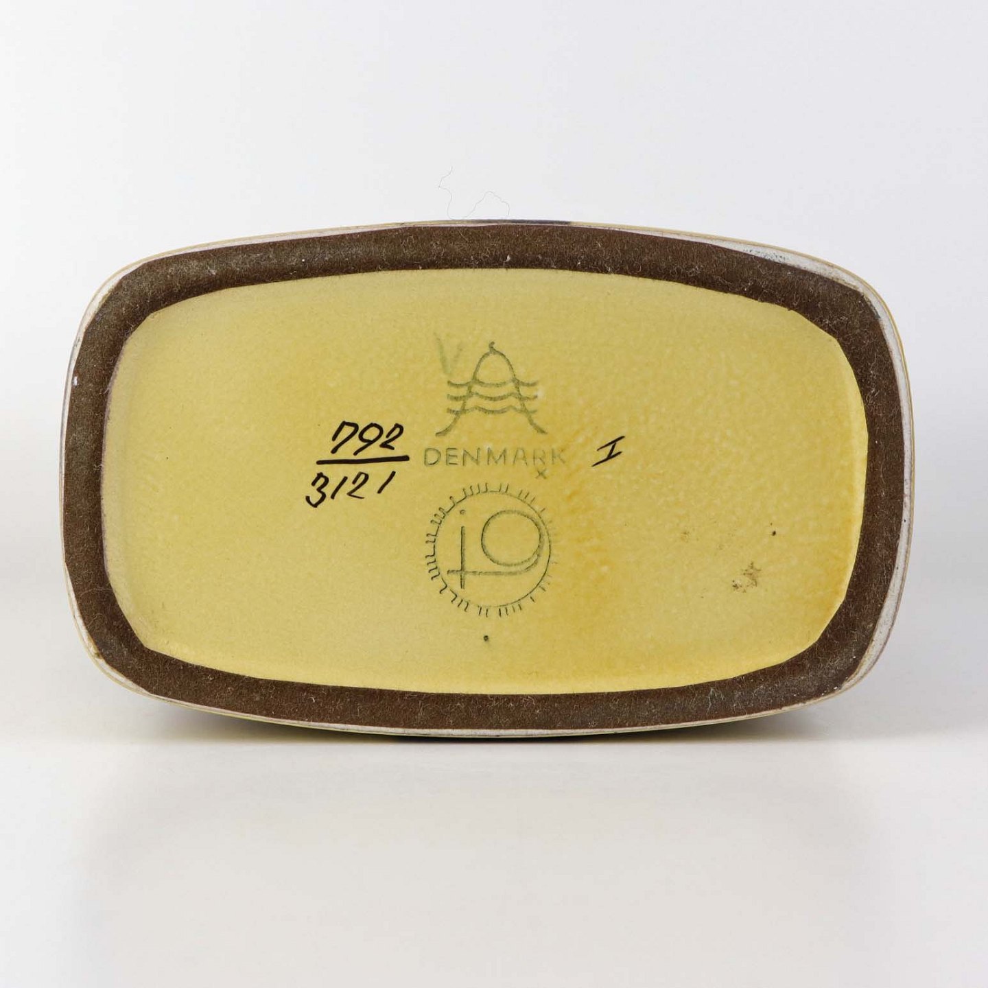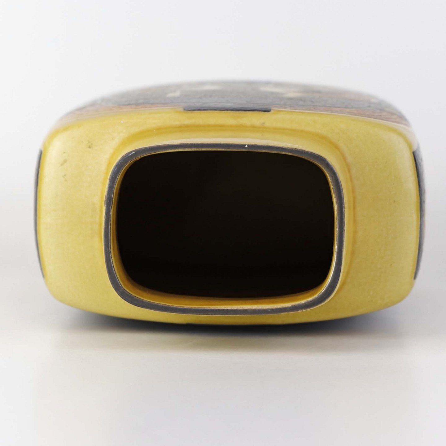 Kantet vase i fajance fra Baca serien i brune og gule farver med motiv af frugter. Nr. 792/3121