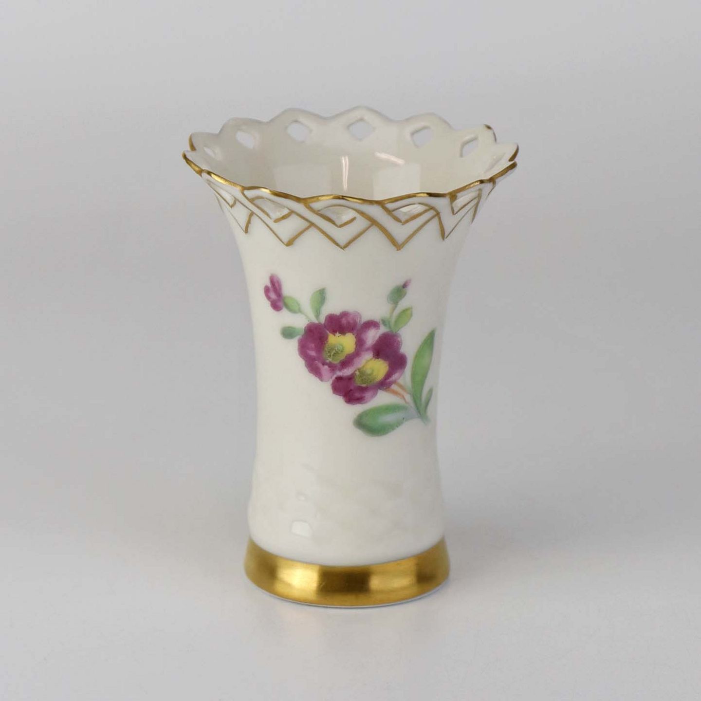 Lille vase i porcelæn med gennembrudt kant fra stellet Saksisk blomst creme. Nr. 171