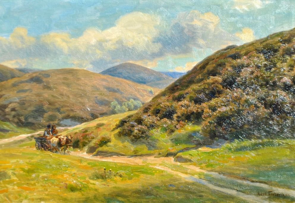 Frederiksen, Axel (1881 - 1961) Dänemark: Eine Ochsenkutsche in Rebild Bakker.