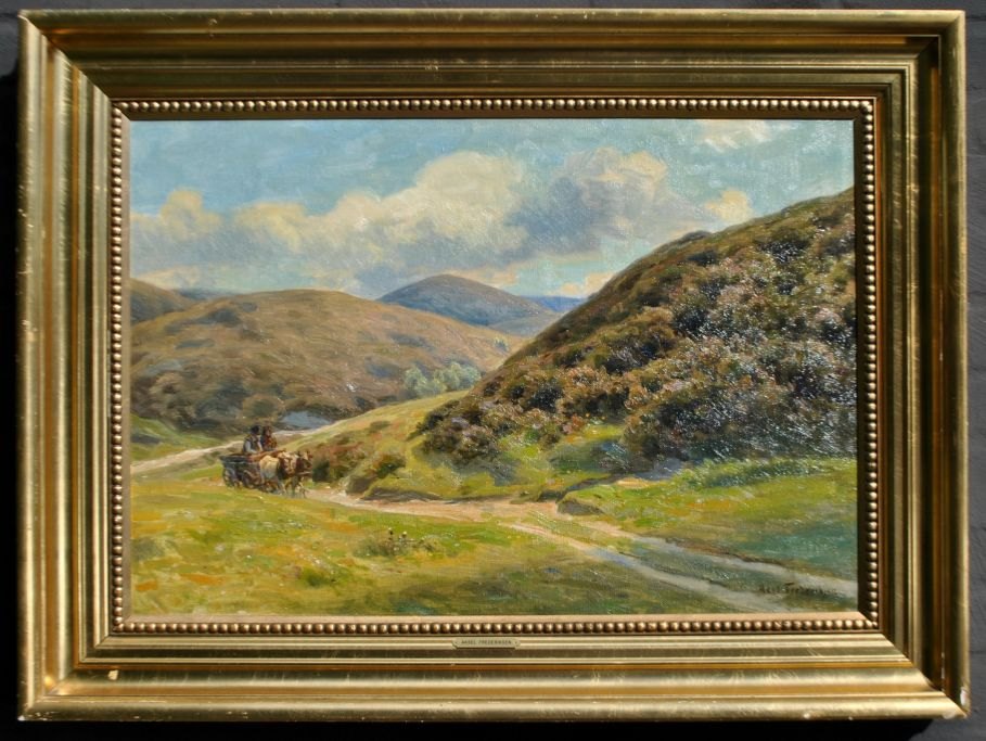 Frederiksen, Axel (1881 - 1961) Dänemark: Ein Ochsenkarren in Rebild Bakker. Öl auf Leinwand. Unterzeichnet. 50 x 70 cm.
