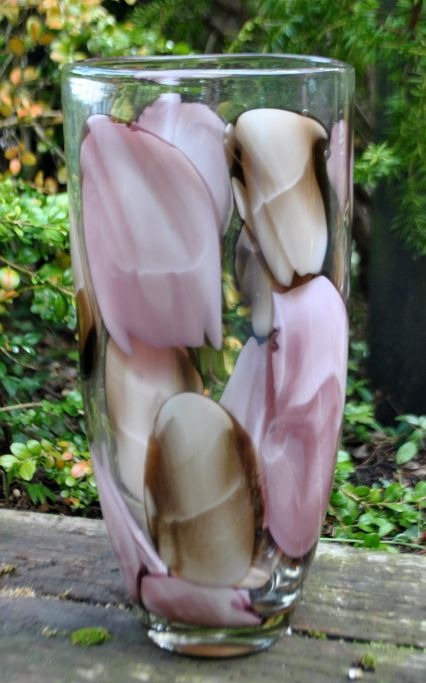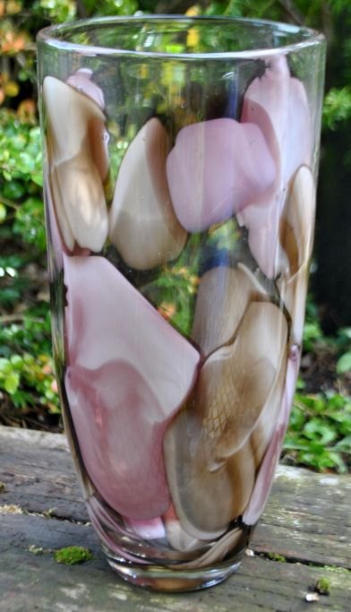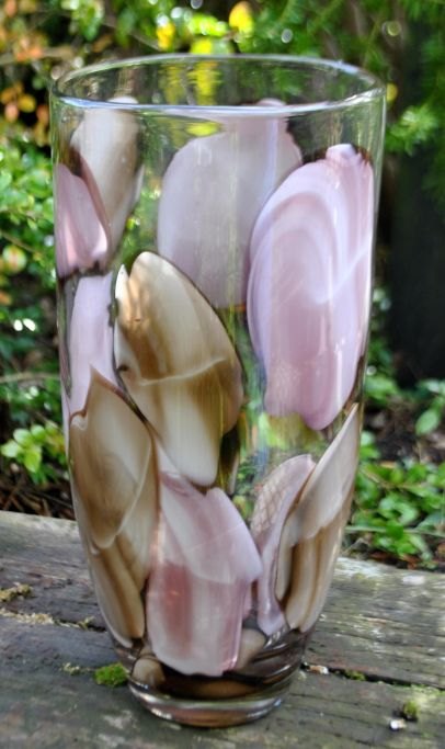Glasvase mit rosa und braunem Dekor, 20. Jahrhundert.
