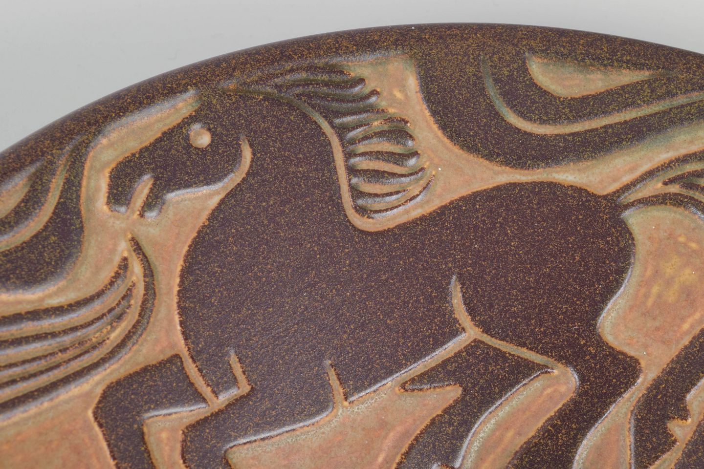 Imponerende stor, rund stentøjsskål med organisk form og karakteristisk glasur.