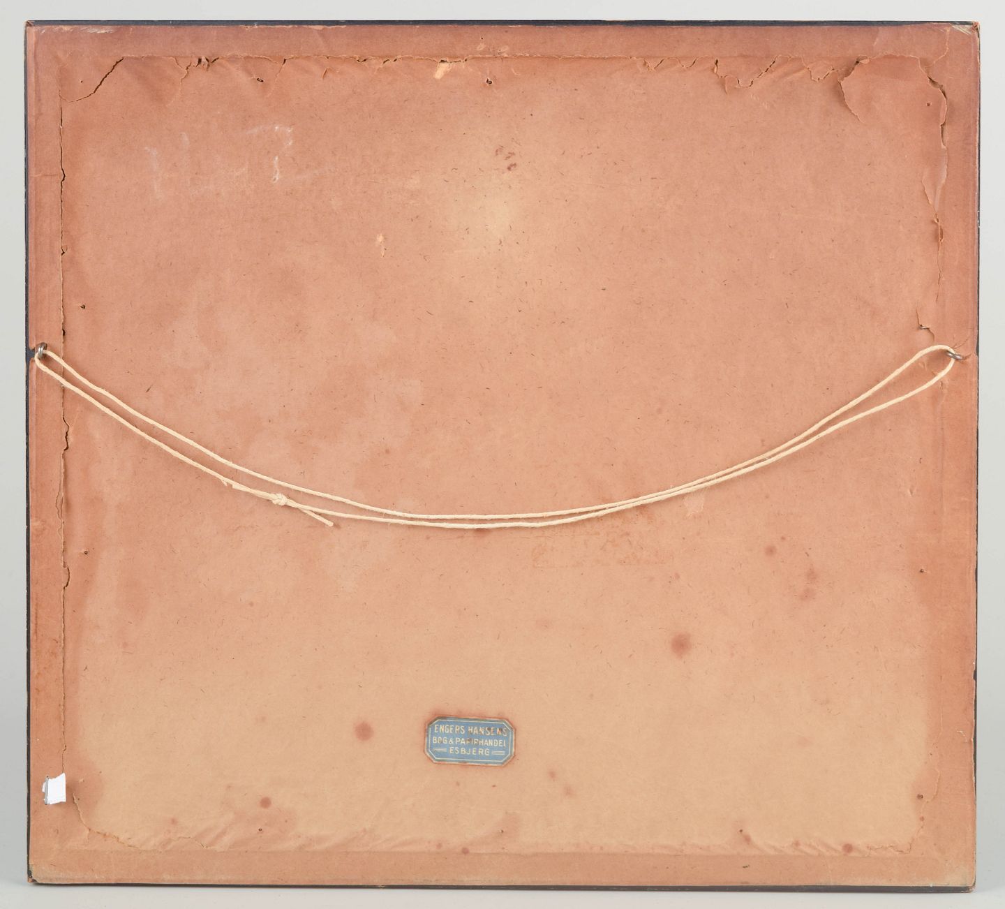 Totalmål: Ca. 34 × 37 cm (indrammet, bag glas)
