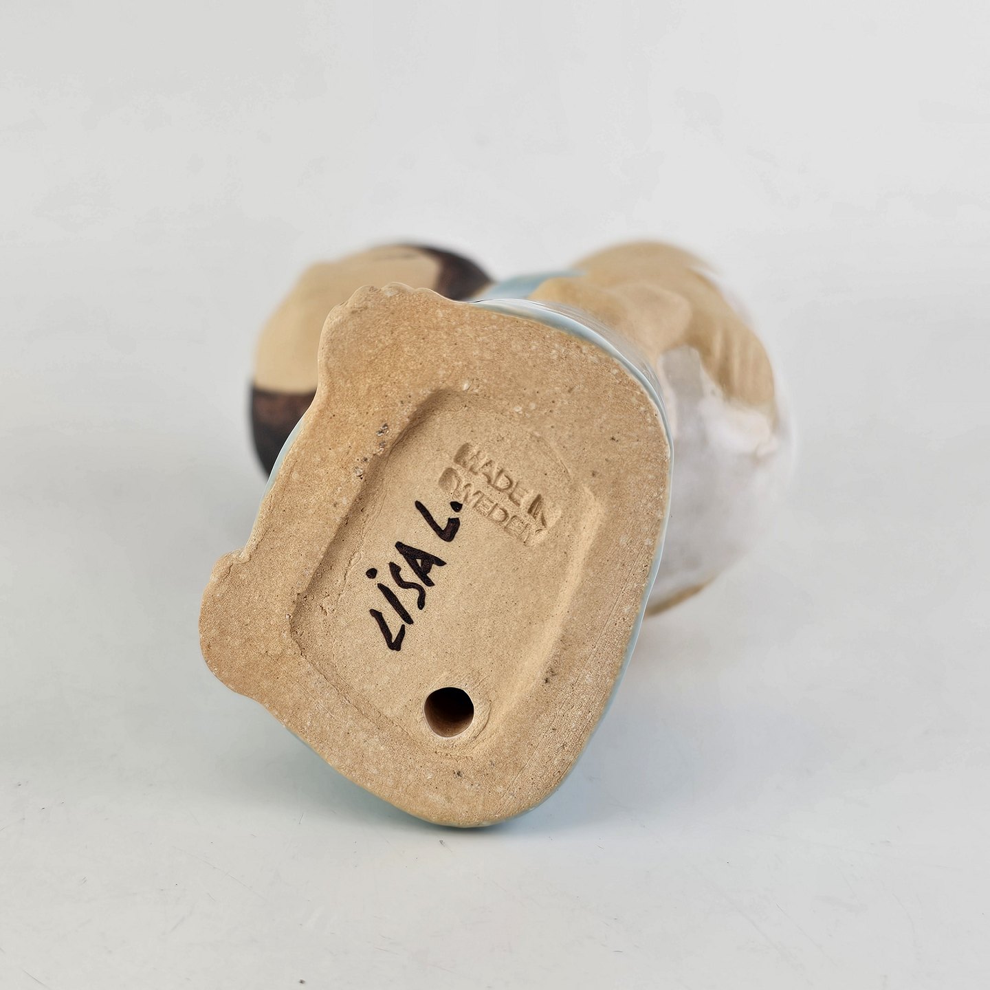 Stemplet under bunden Made in Sweden og signeret Lisa L.