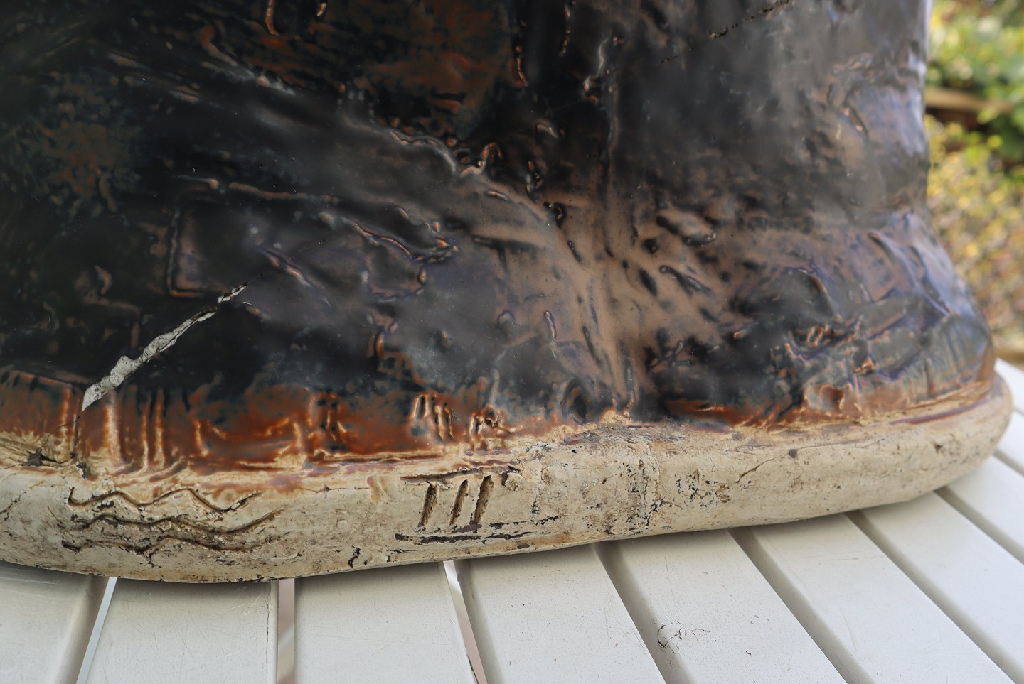 Text zugänglich auf Dänische: 1 stk mulig prototype (No 3) i brun dilou glasur mærket med de tre bølgelinier 6 #III og synlige brændingsrevner/ sammenføjninger - flere billeder kan sendes - eller kom og se den i Mariager