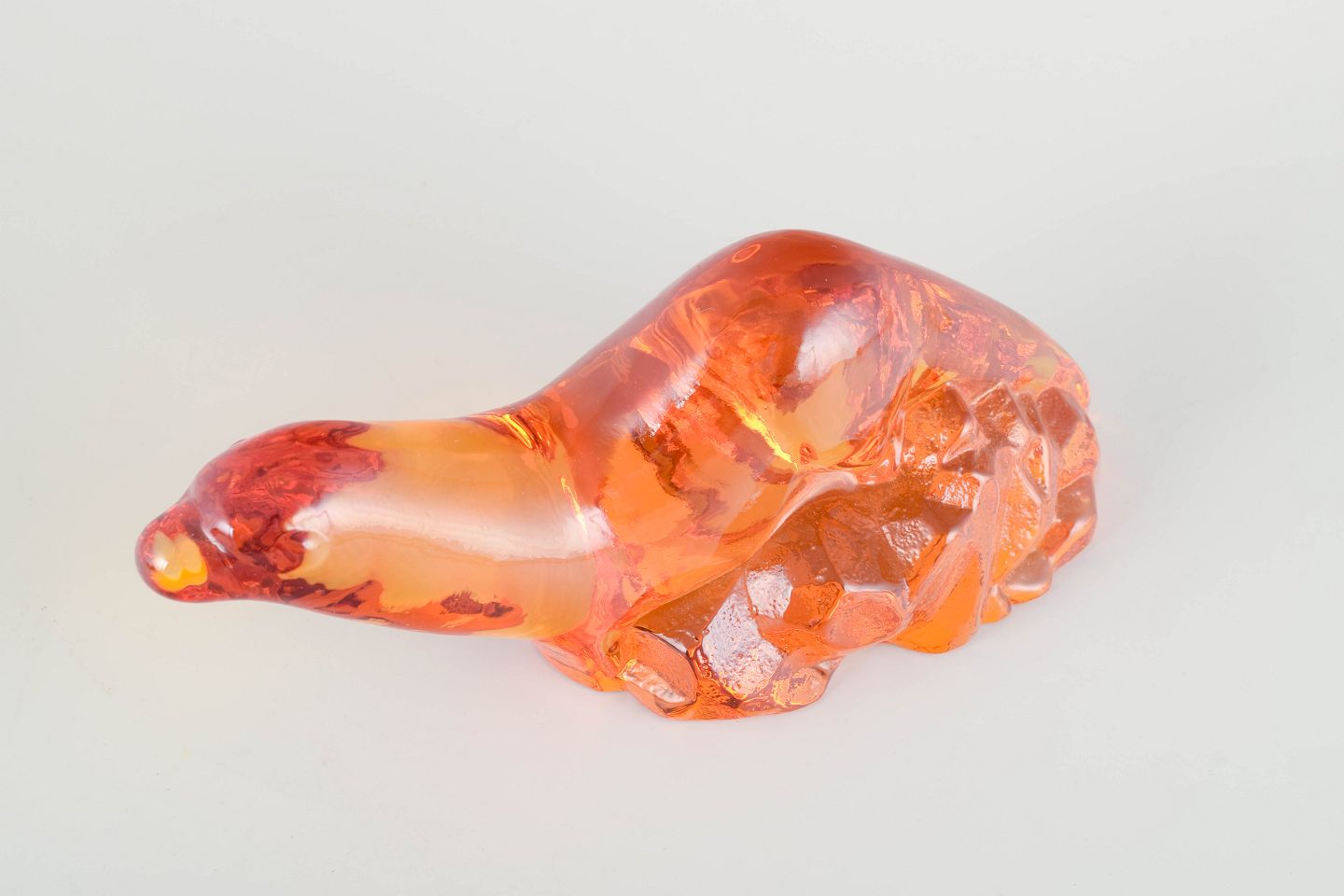 Sæl i ravfarvet kunstglas, 1970’erne.