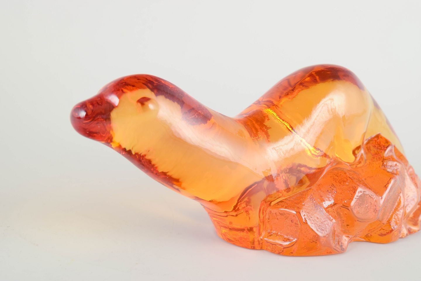 Håndstøbt kunstglasfigur af sæl i varm ravgul glasmasse, fremstillet i samarbejde med World Wildlife Fund. Organisk modelleret form med naturtro udtryk, udført i begrænset udgave.