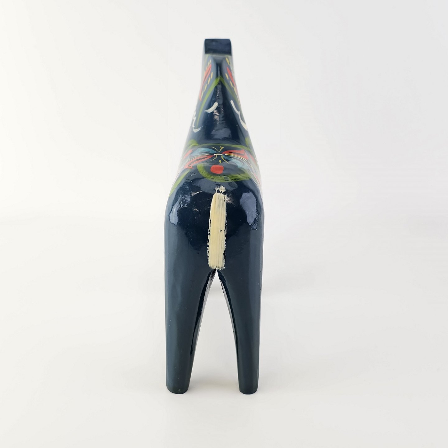 Figur af blå Dalarhest i malet og lakeret træ
