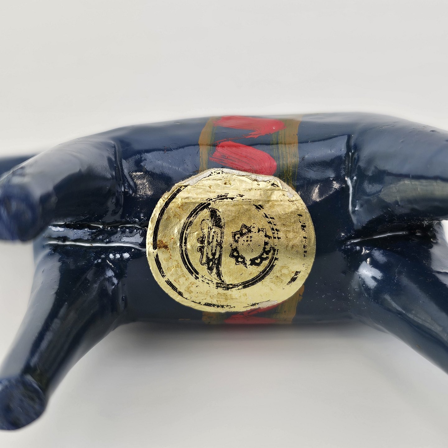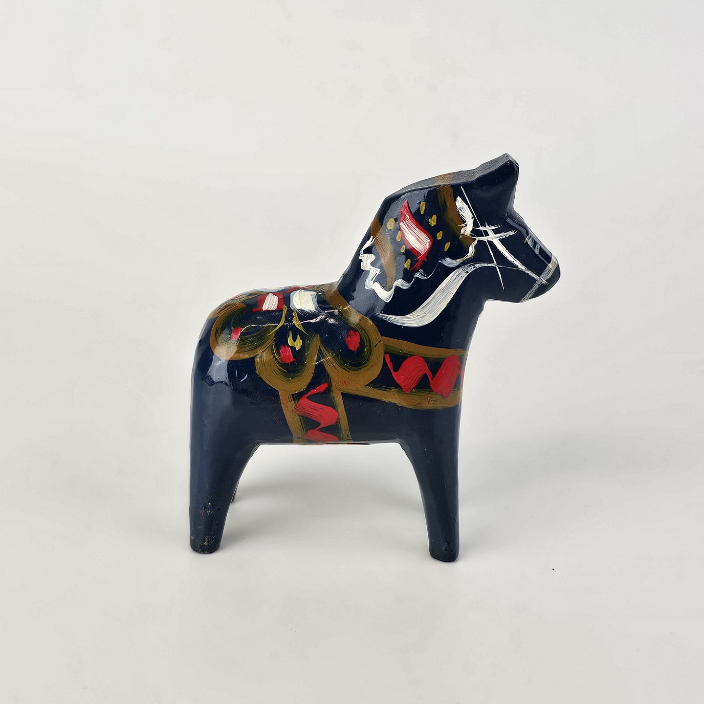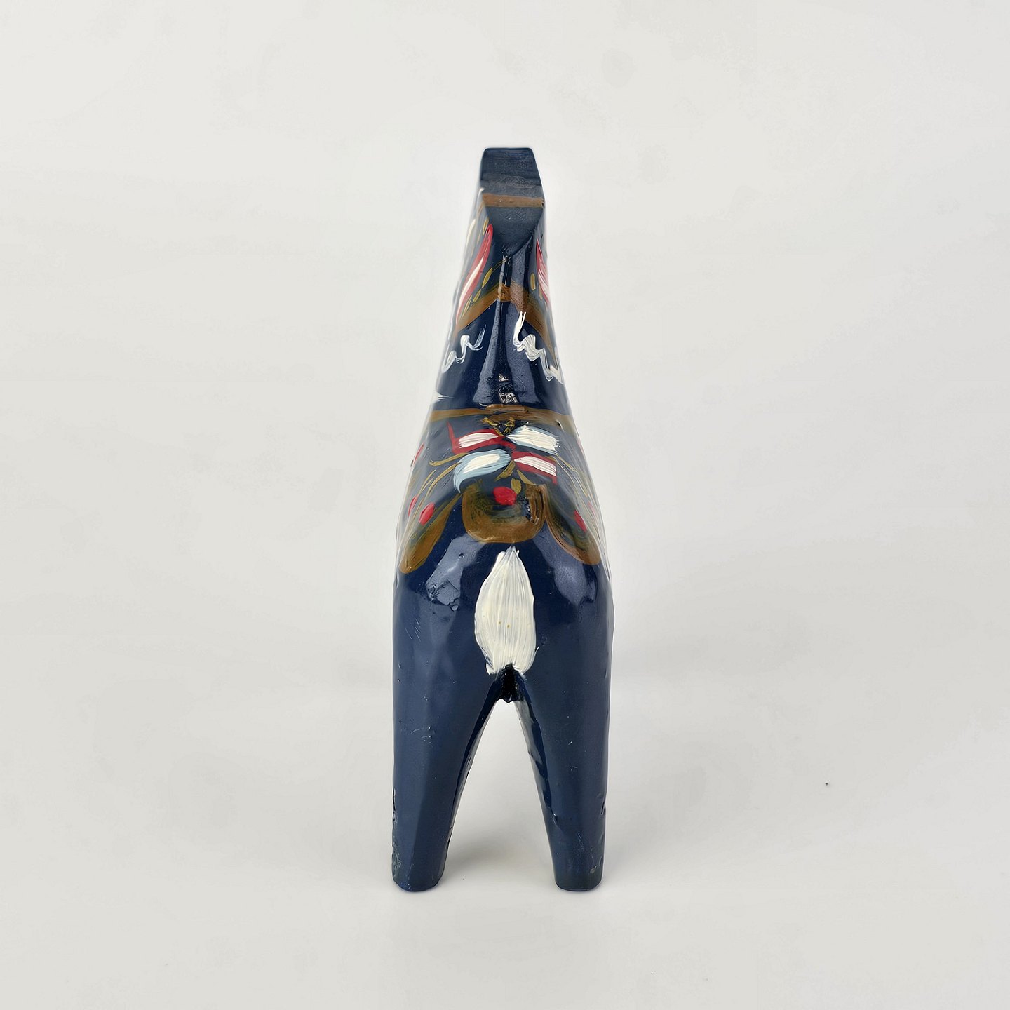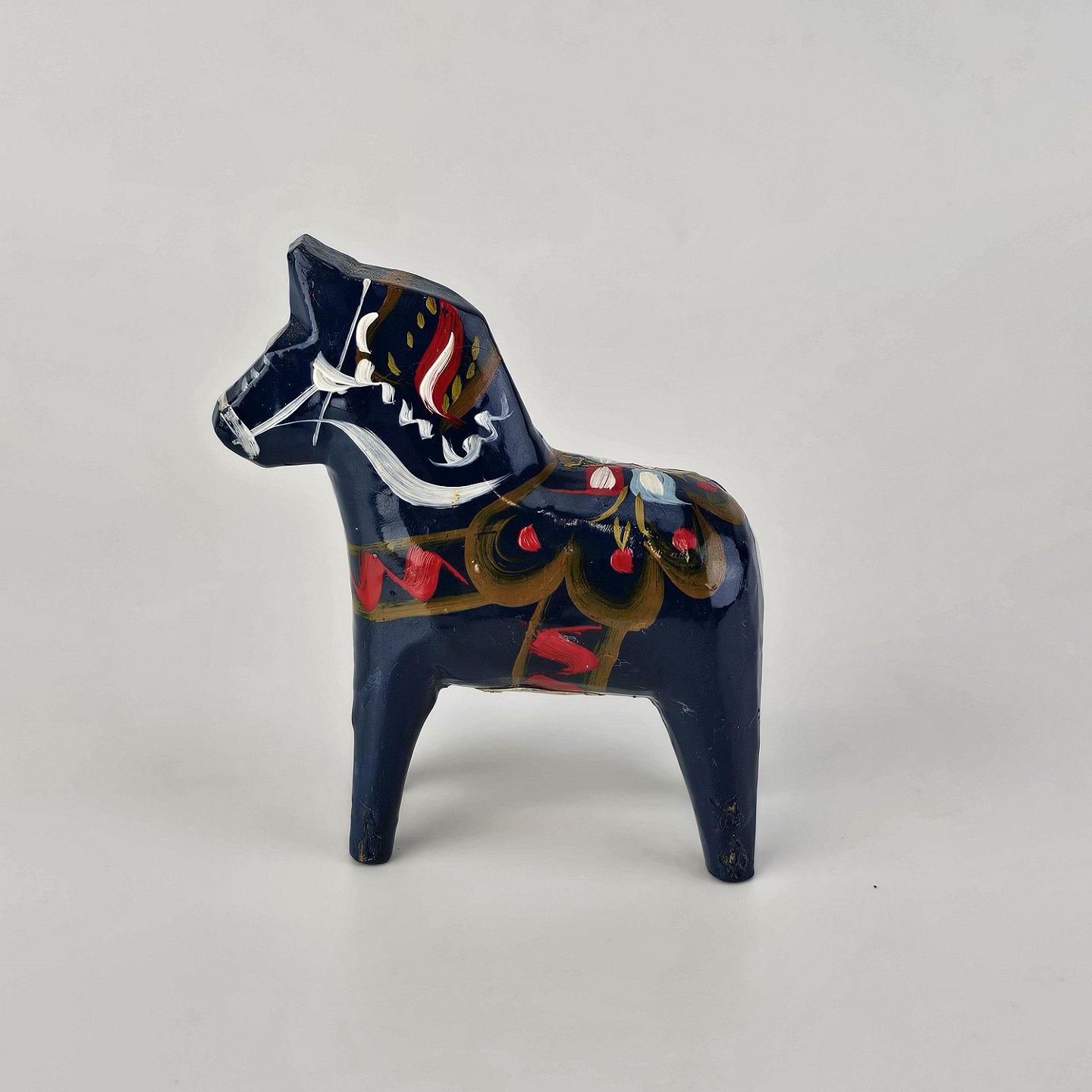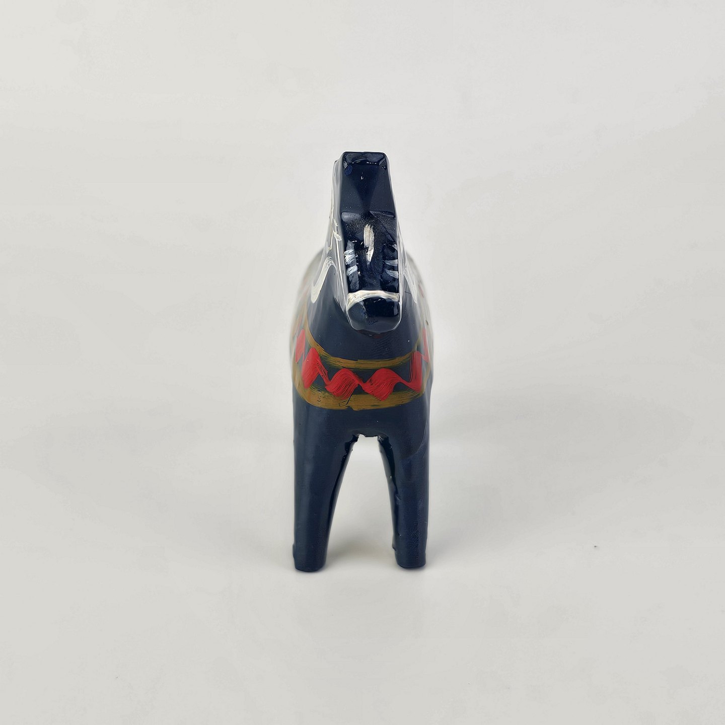 Figur af blå Dalarhest i malet og lakeret træ