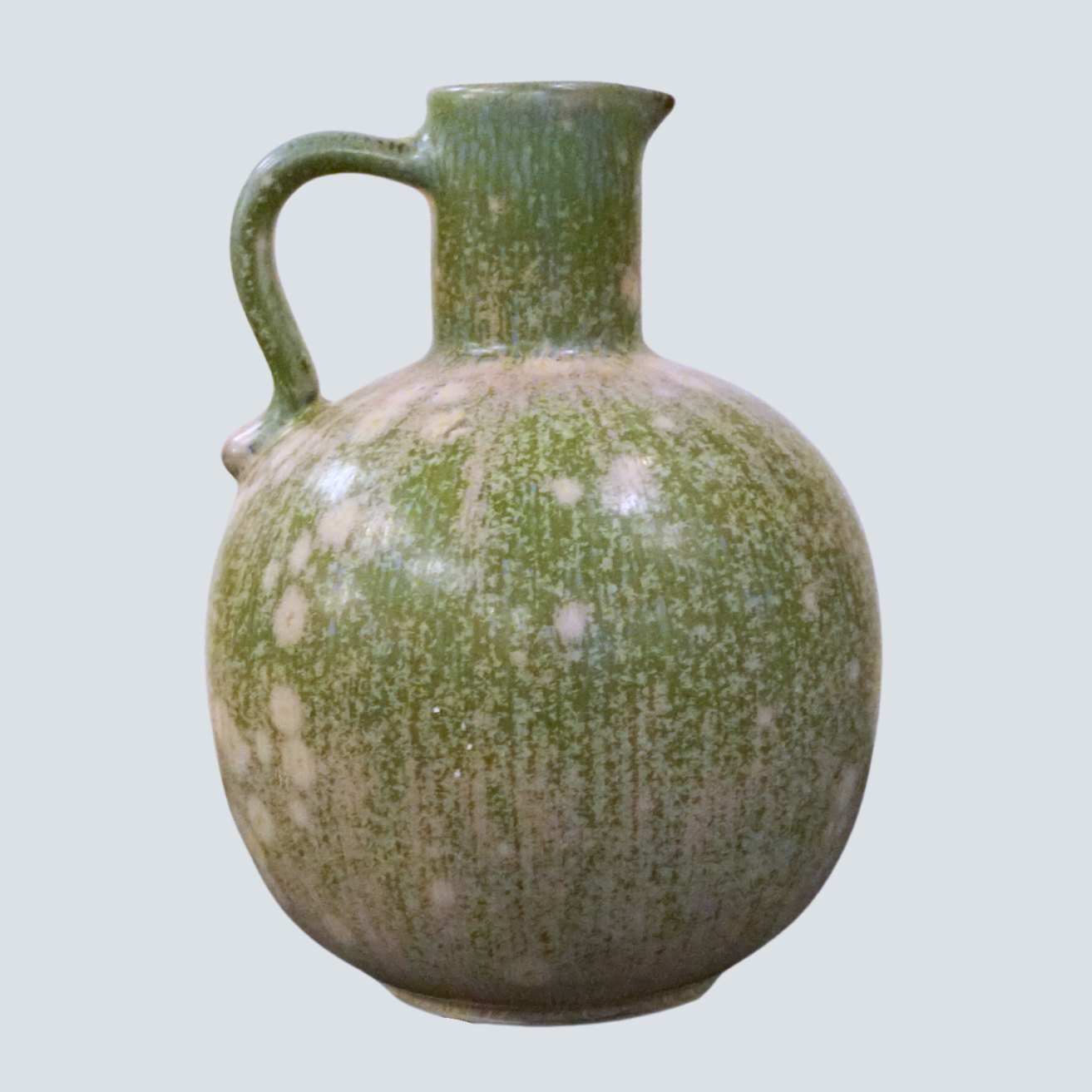 Bing & Grøndahl; Keramik kande med hank i grønlig krystalglasur #T.304.