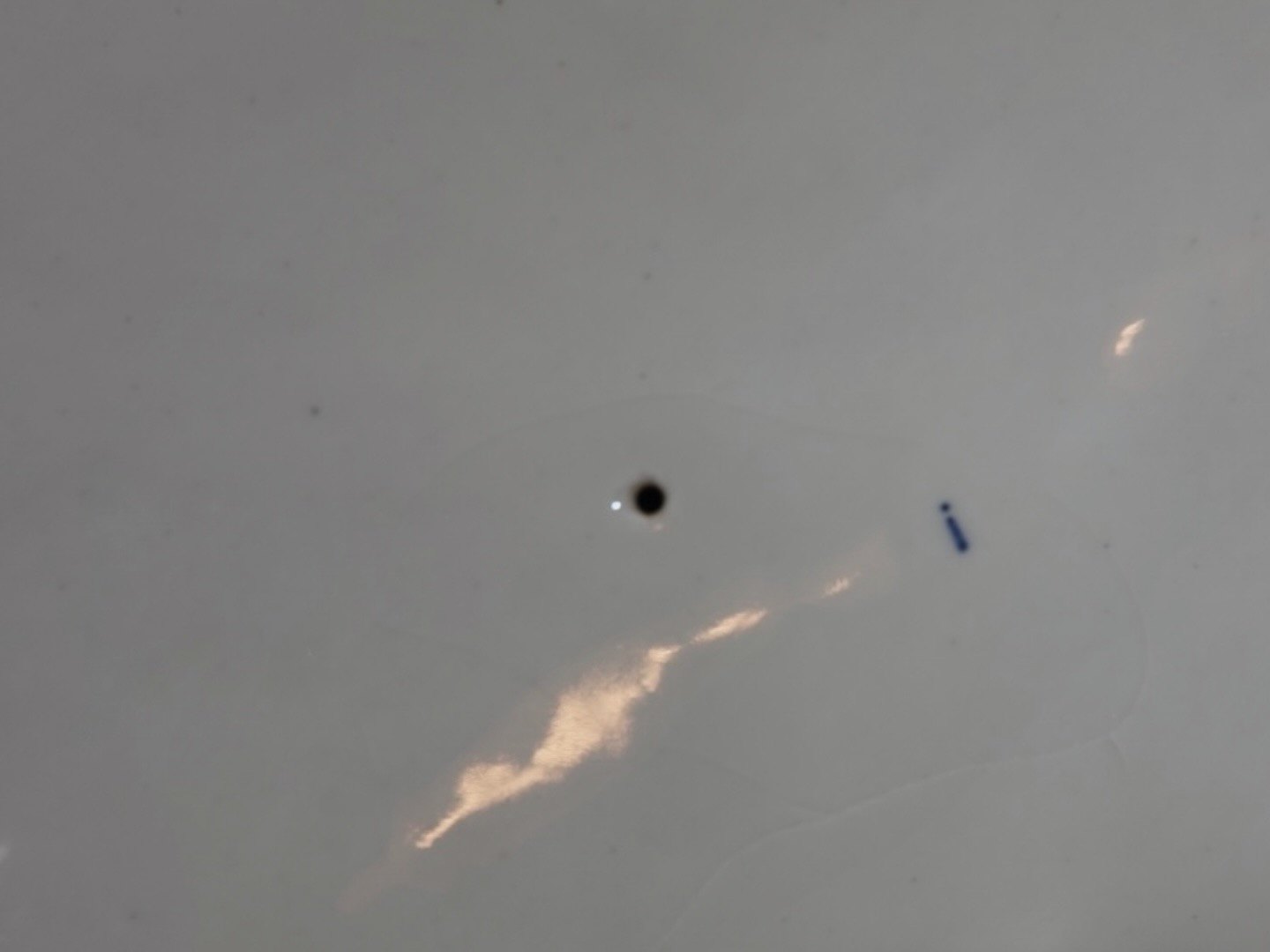 Et håndtag er limet på og låget har en "kryds" hårrevne på midten, se nærfotos.