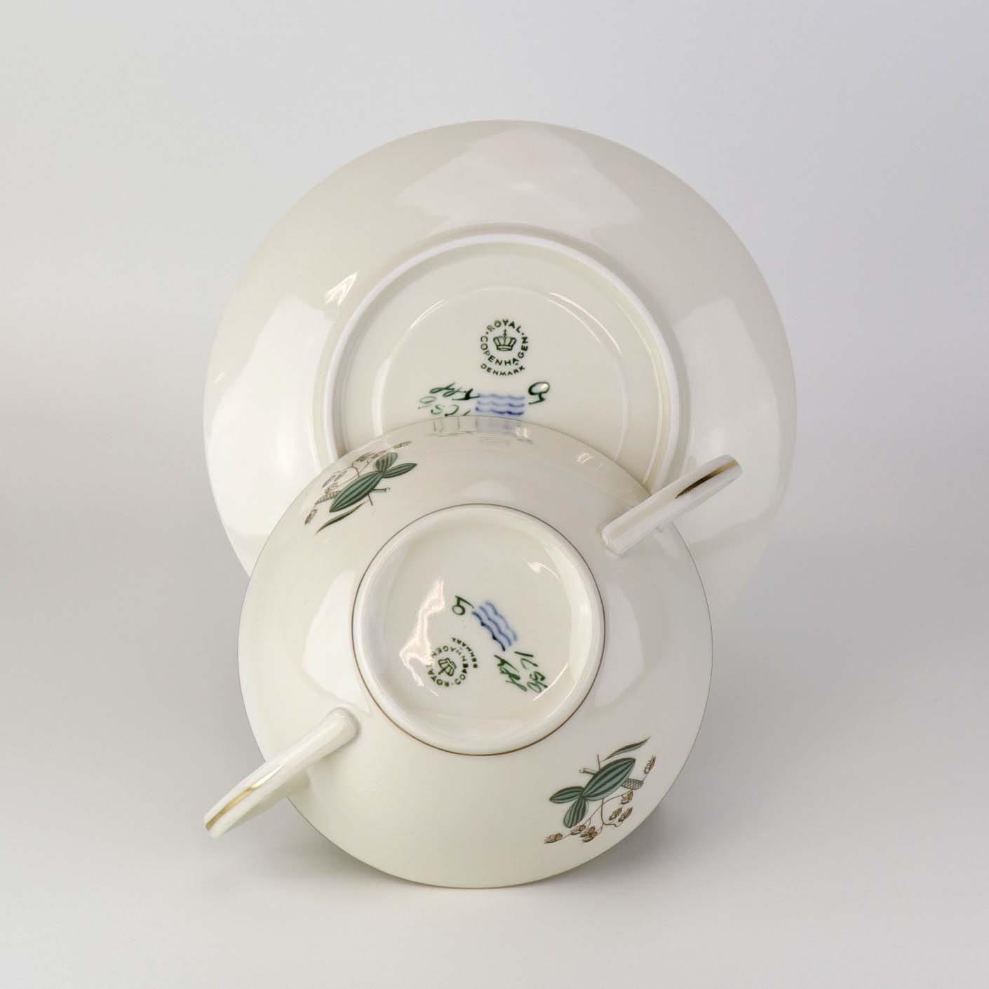 Suppekop med underkop i kongelig porcelæn fra stellet Hjertegræs. Nr. 884/9571