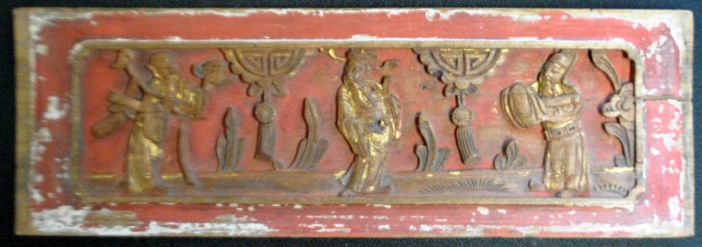 Antike chinesische bemalte Holzschnitzerei, 19. Jahrhundert.