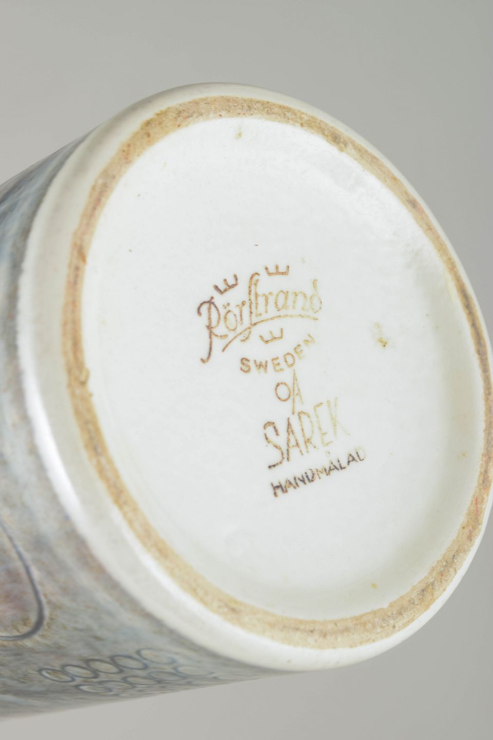 Olle Alberius (f. 1938) var en del af den innovative designbølge hos Rörstrand i 1960’erne, hvor fokus var på naturmaterialer, taktile overflader og nordisk modernisme. Serien “Sarek” er navngivet efter den svenske nationalpark og er kendt for sine grafiske mønstre og rå skandinaviske udtryk.