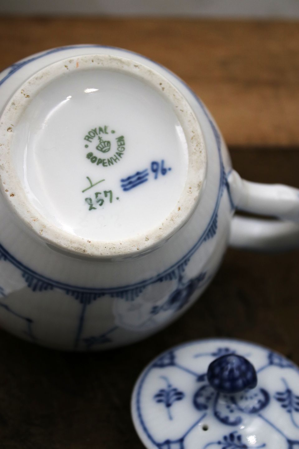 Sjælden Royal Copenhagen Musselmalet Riflet tekande. 1/257.
