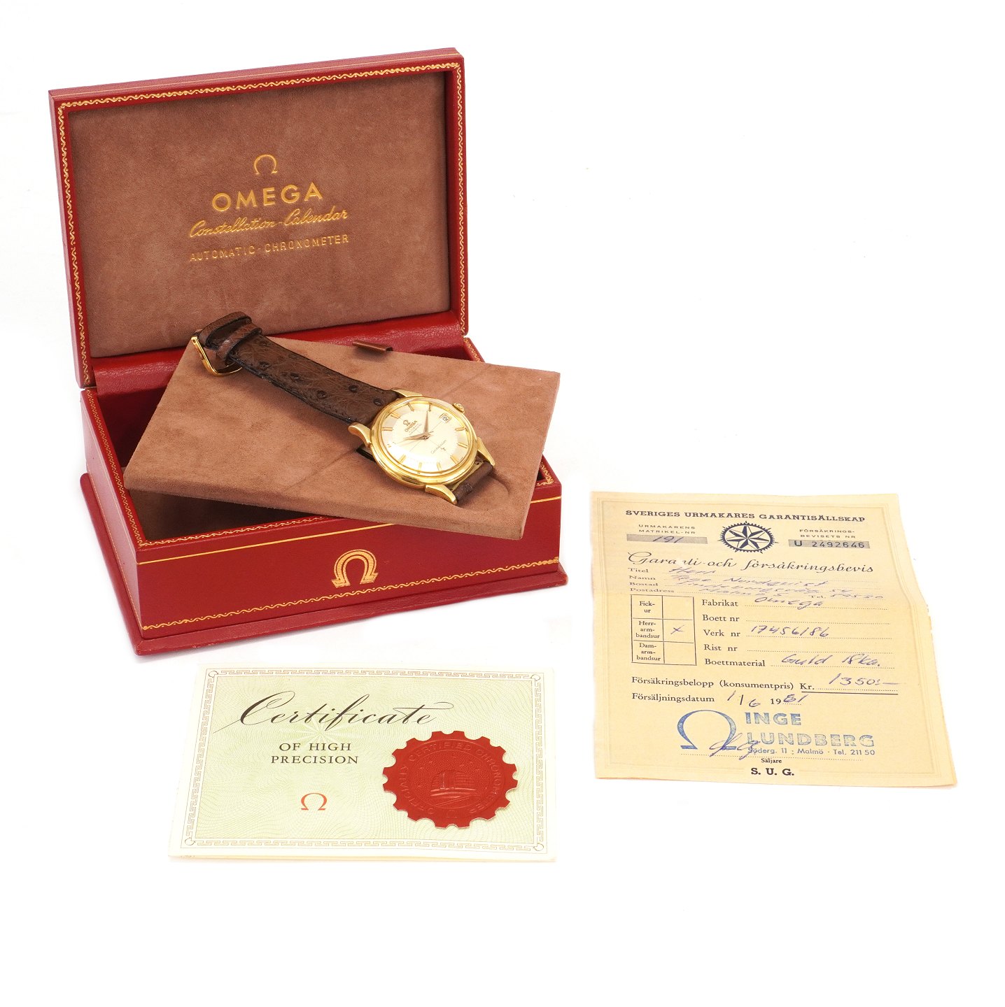 Omega Constellation Pie Pan aus 18kt Gold mit Box und Zertifikat Ref. 14382 82SC verkauft am 01.06 1961