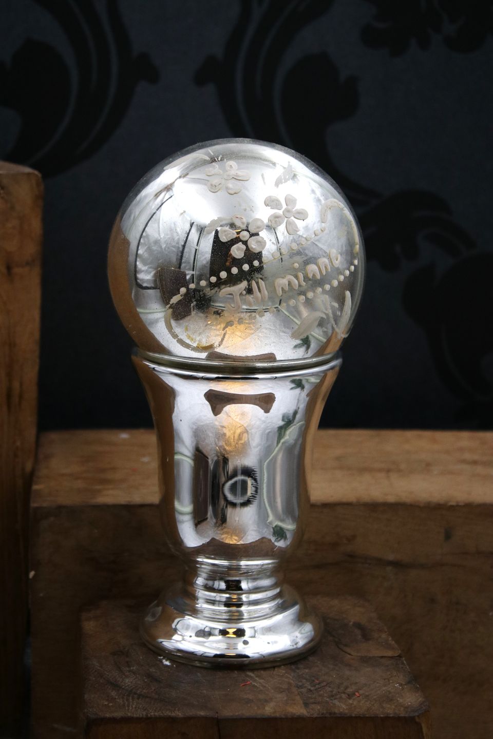 Titelseite >> Antique Portal Kategorien   >>  Glas   >>  Andere   >>  Intern nr.: Mindekugle i fattigmandssølv  Senden uns ein e-post
