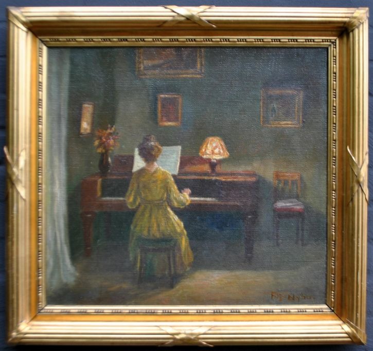 Friis Nybo, Poul (1869 - 1929) Dänemark: Frau spielt Klavier. Öl auf Leinwand. Unterzeichnet. 49 x 52 cm.